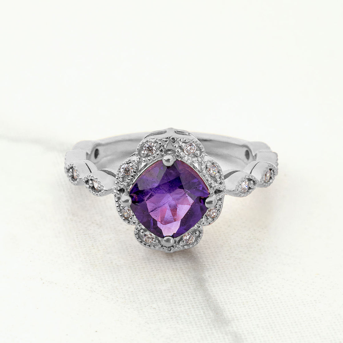 Amethyst Vintage Engagement Ring 1920's Inspired Wedding Ring