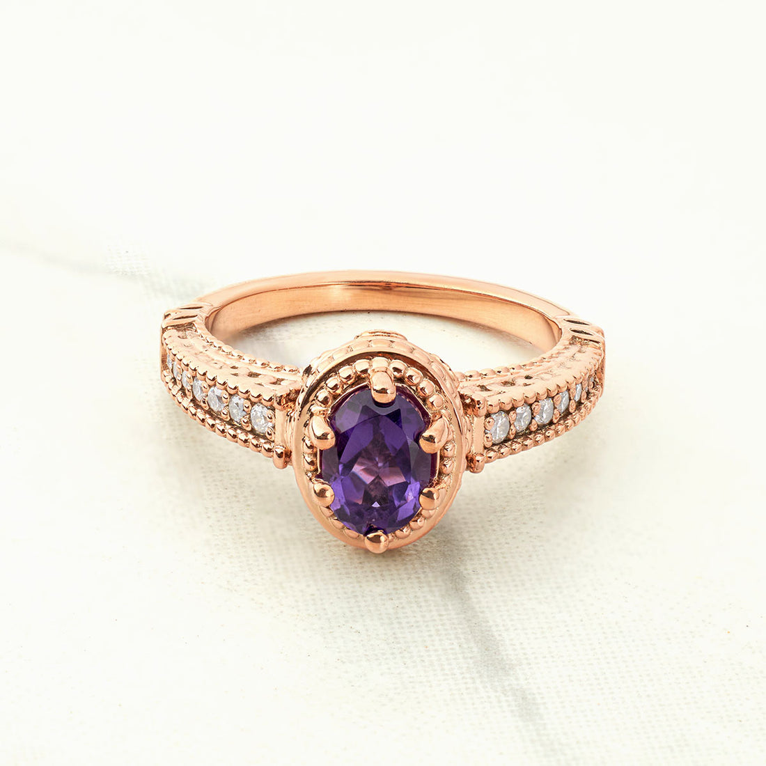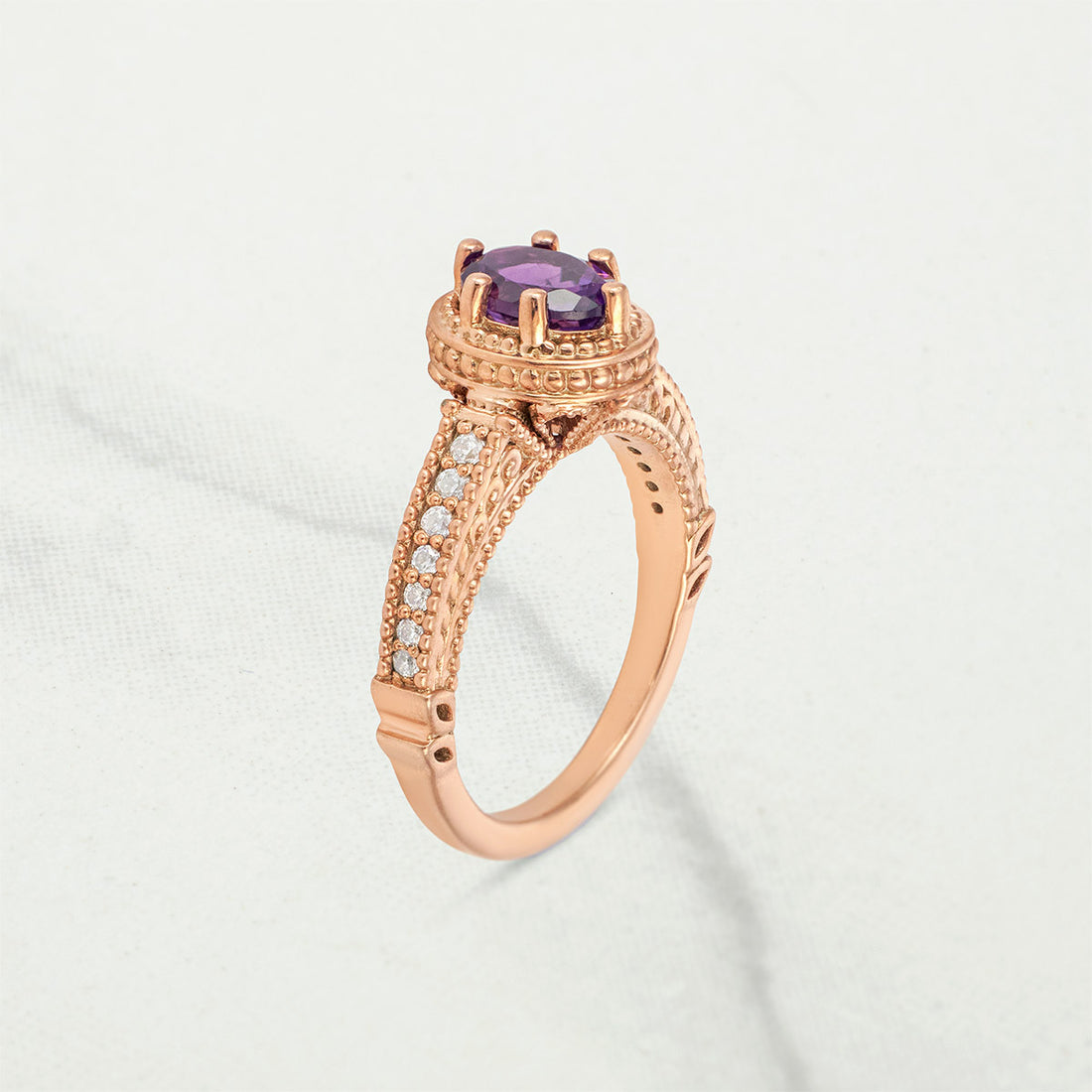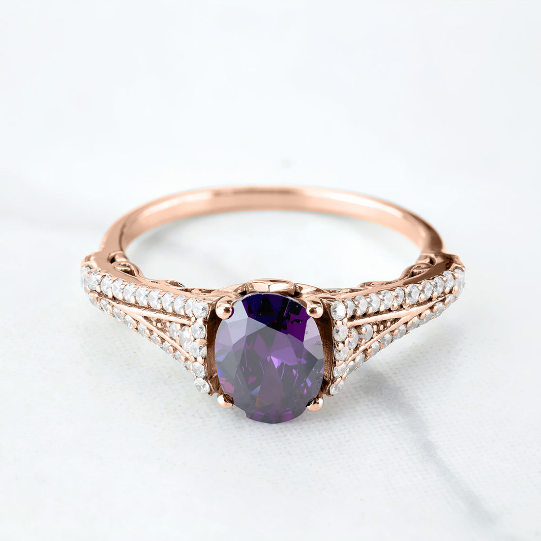 Amethyst Engagement Rings for Women Oval Cut Filigree Art Deco