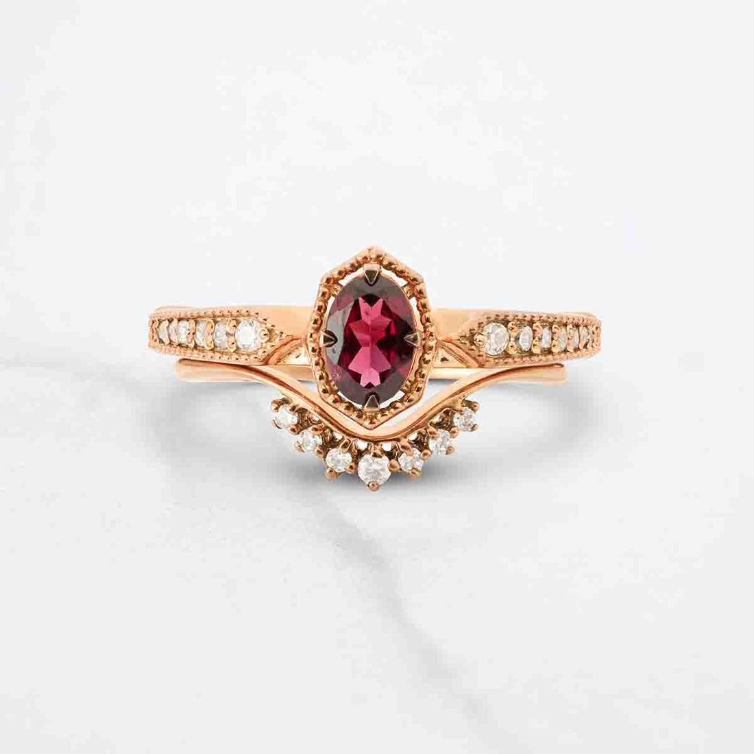 Rhodolite Engagement Ring Set Vintage Inspired Bridal Rings