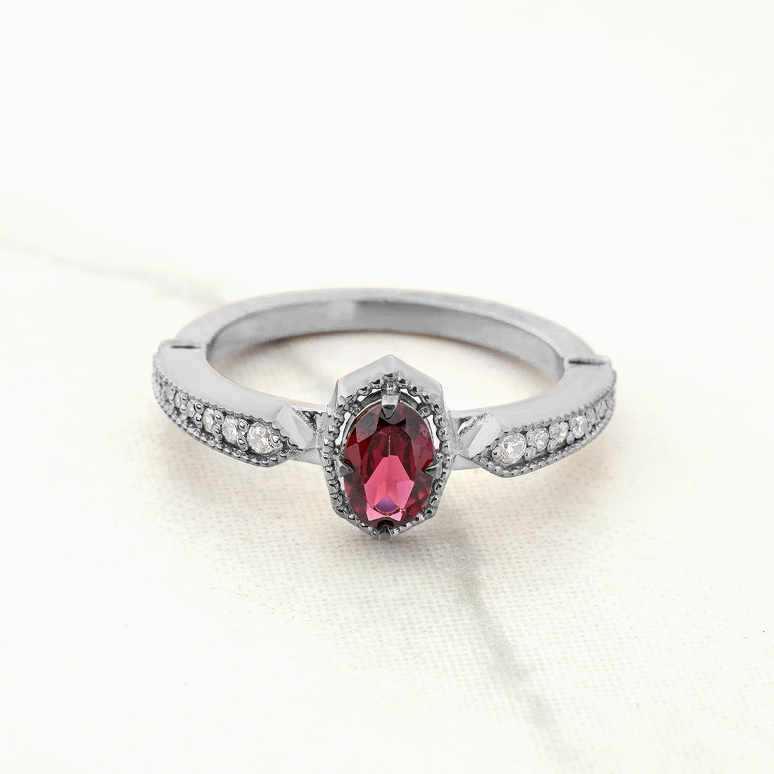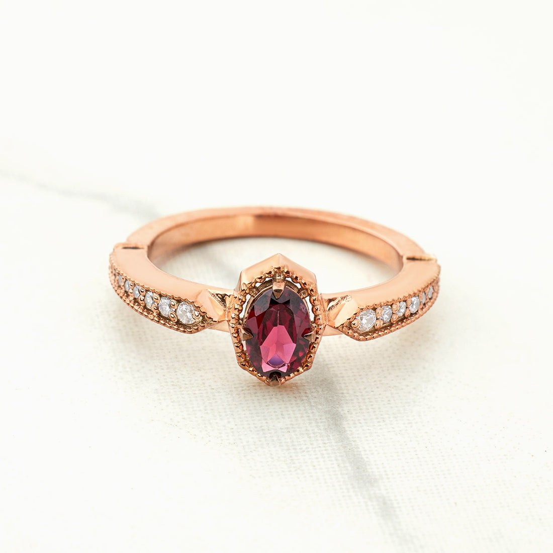 Oval Natural Rhodolite Ring Vintage Inspired Engagement Rings