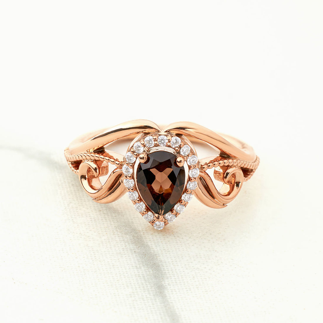 Pear Cut Smoky Quartz Ring Vintage Engagement Ring Rose Gold