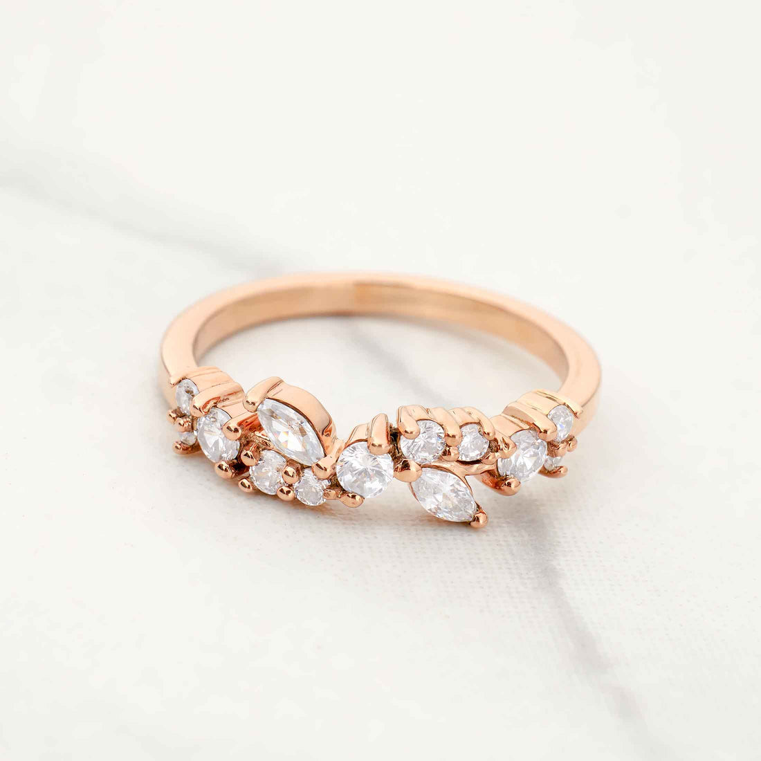Vintage Wedding Band CZ Diamond Anniversary Band Rose Gold