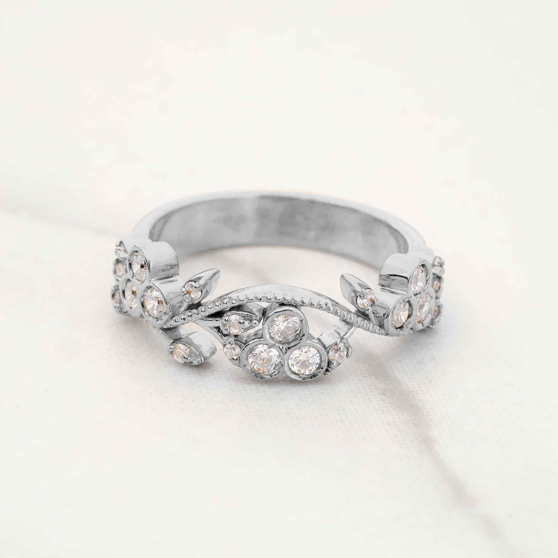 Milgrain Floral Art Deco Wedding Band for Women, Round Cut Approx 0.37TCW White AAA Cubic...