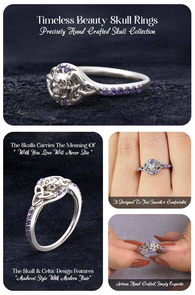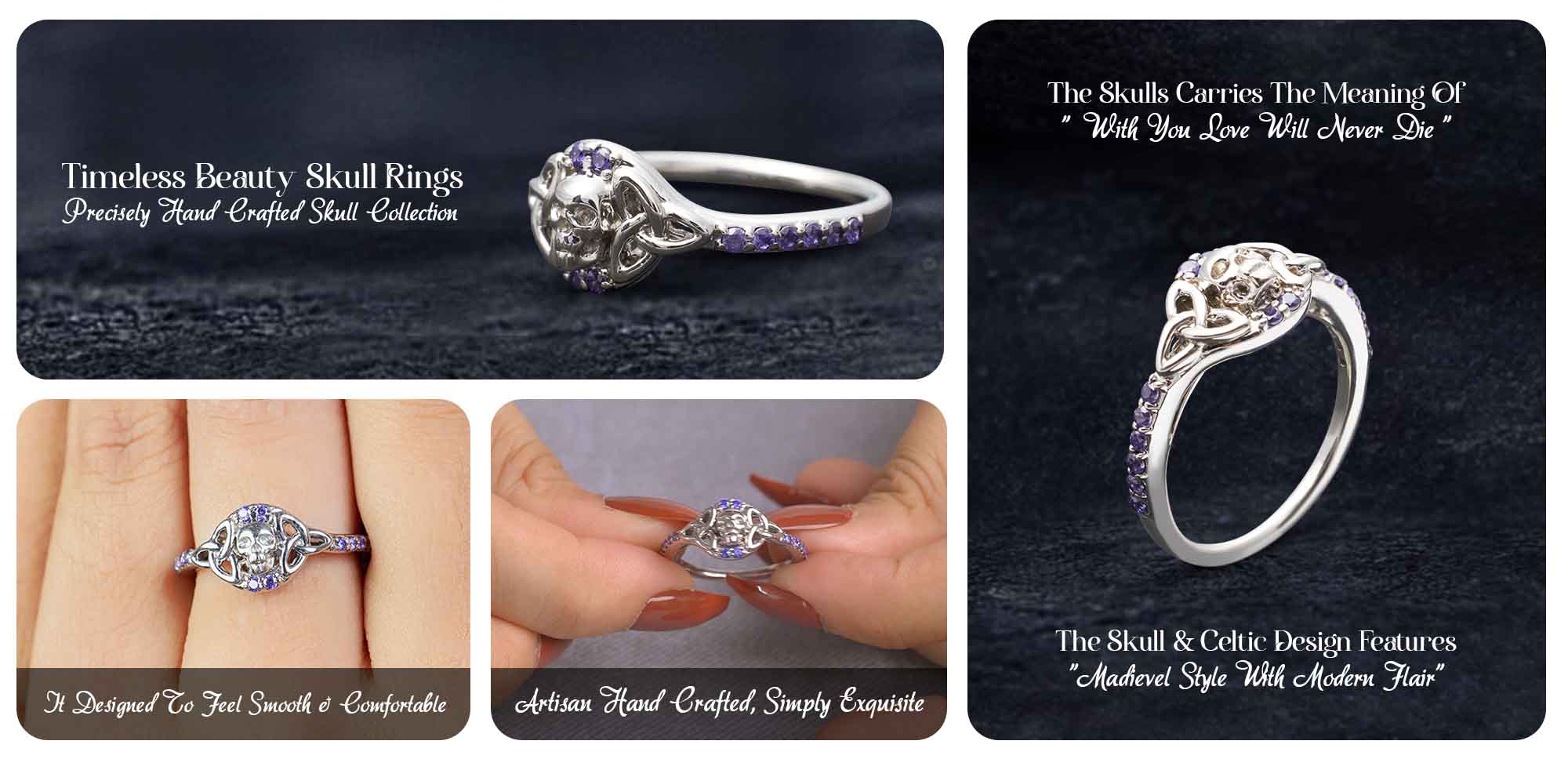 Amethyst Skull Ring For Women Celtic Skull Engagement Rings