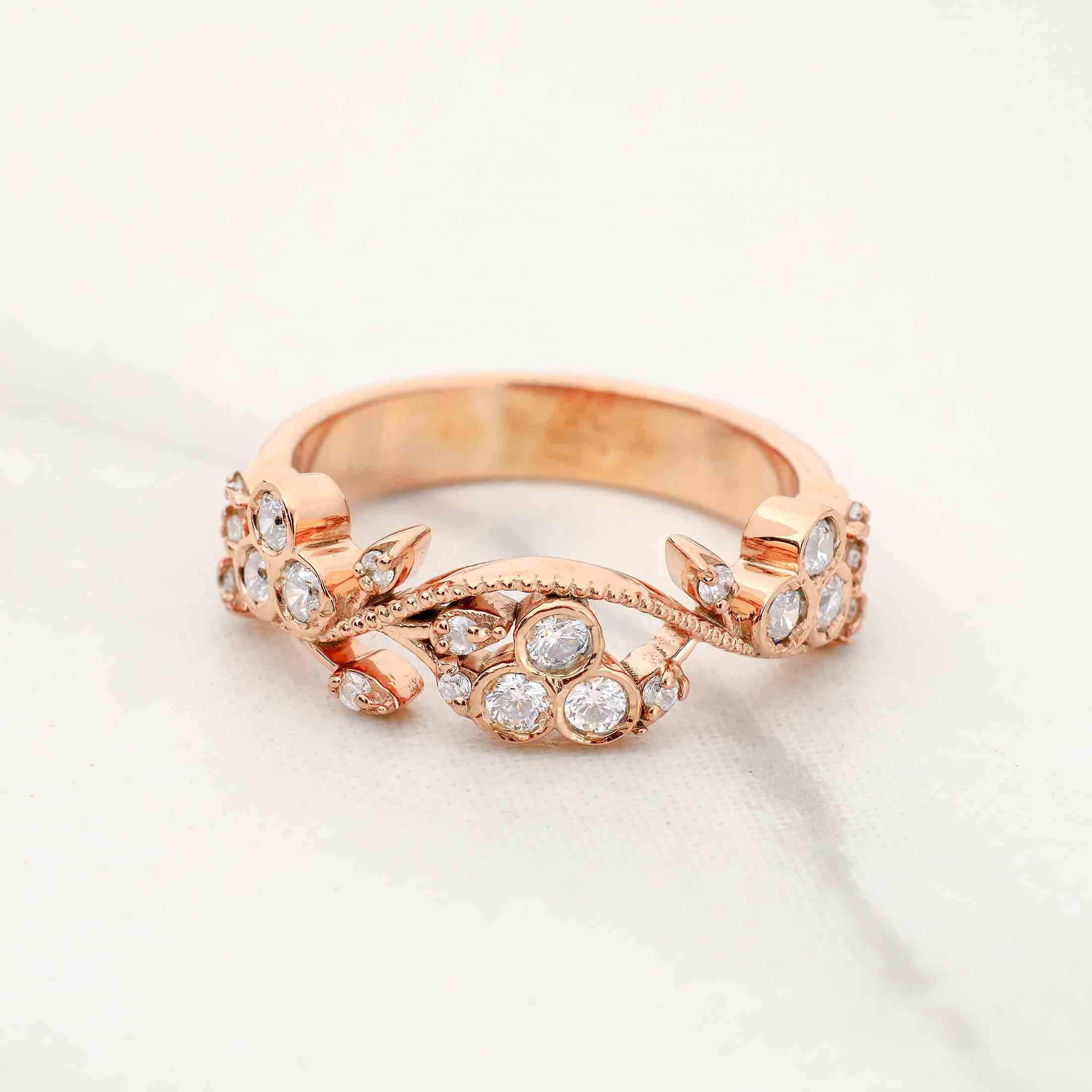 Art Deco Moissanite Wedding Band Rose Gold Anniversary Band