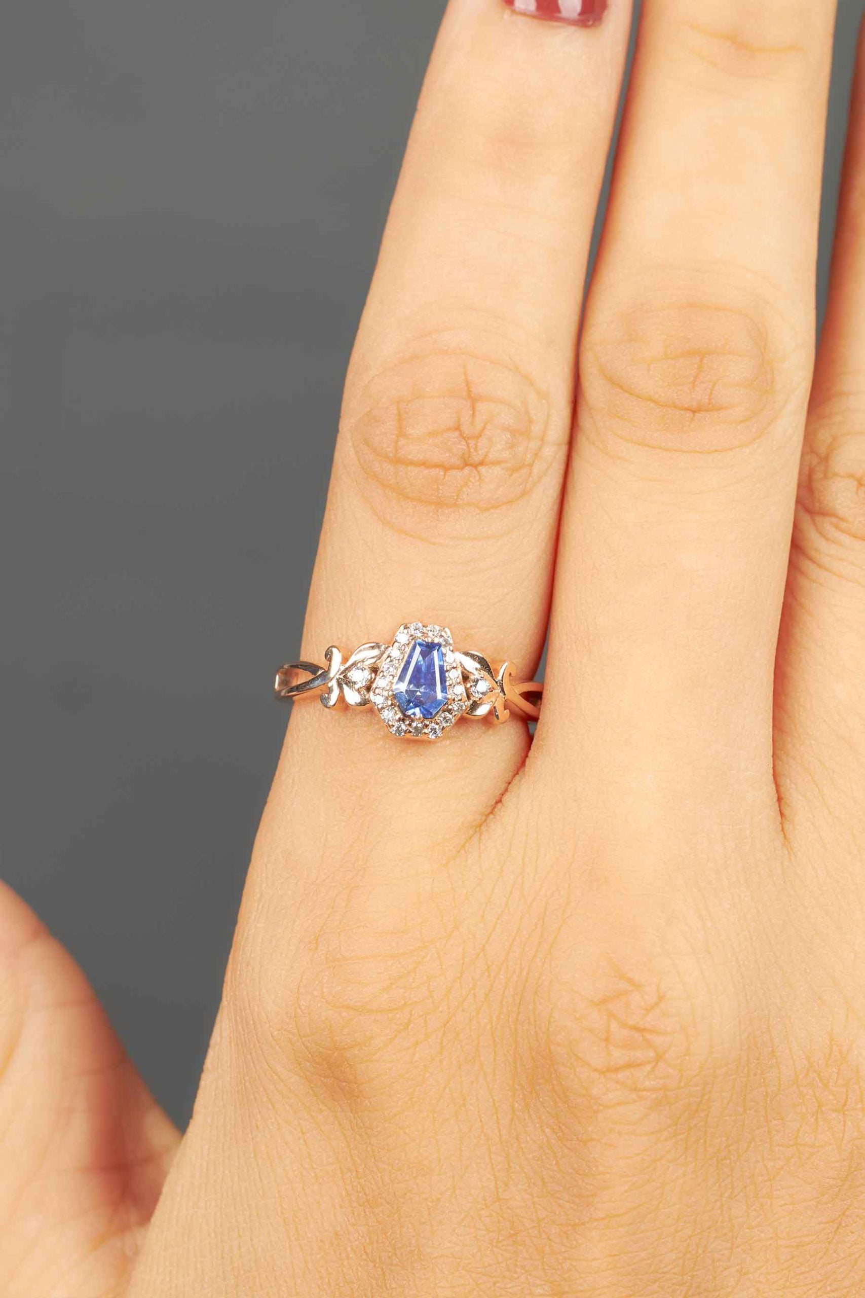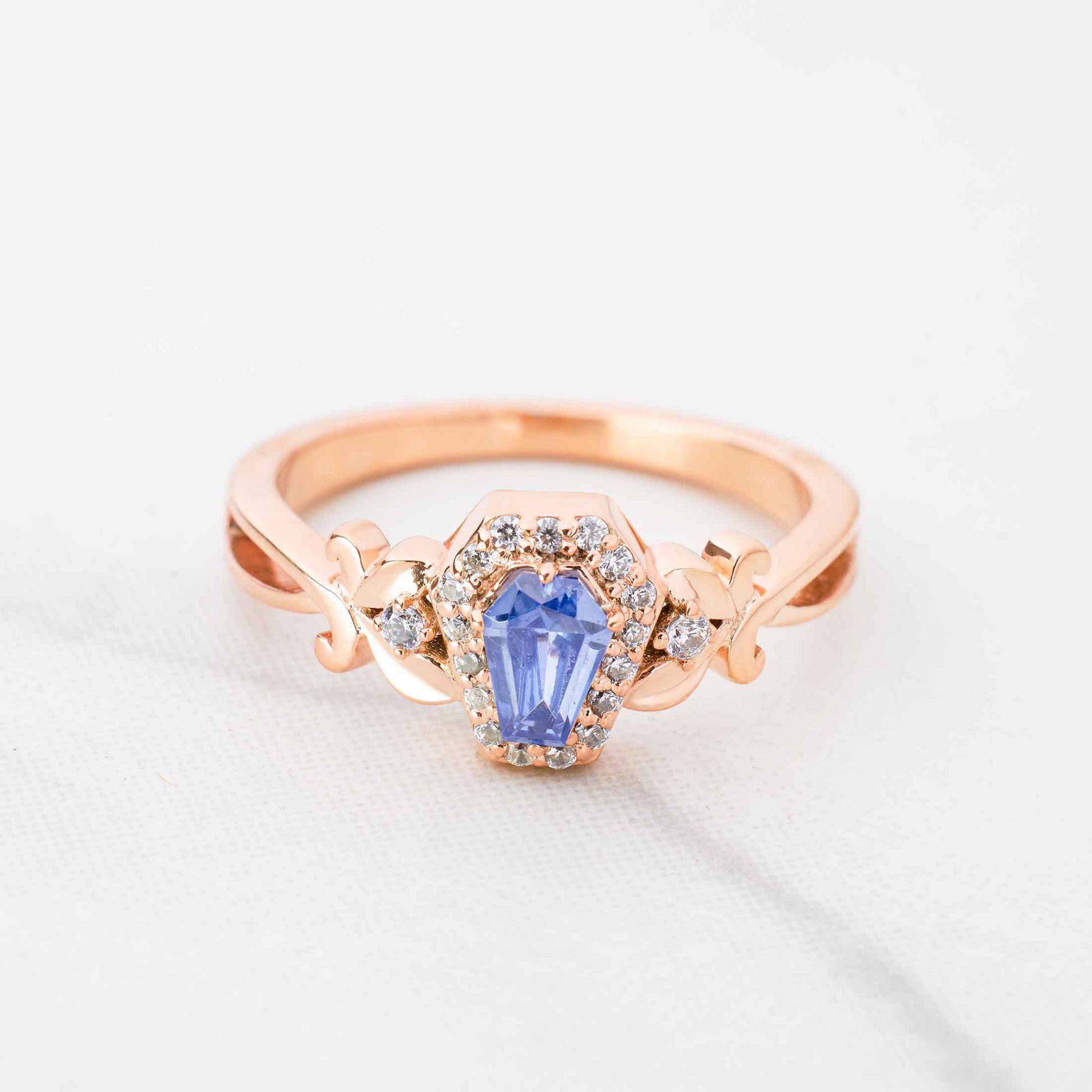 Art Nouveau Coffin Ring Blue Titanic Gemstone Engagement Rings