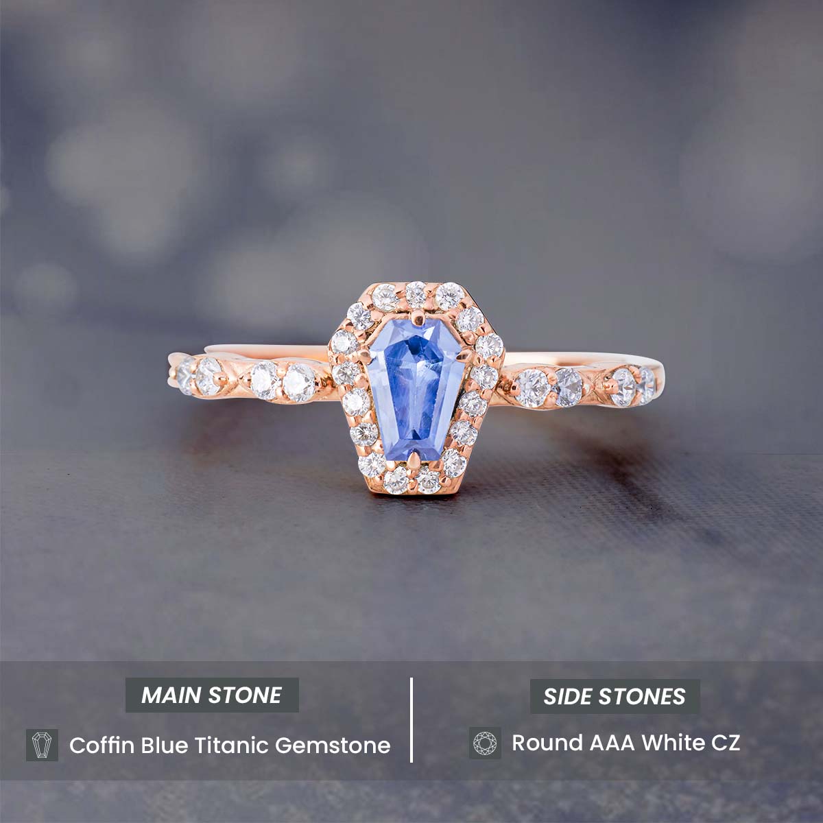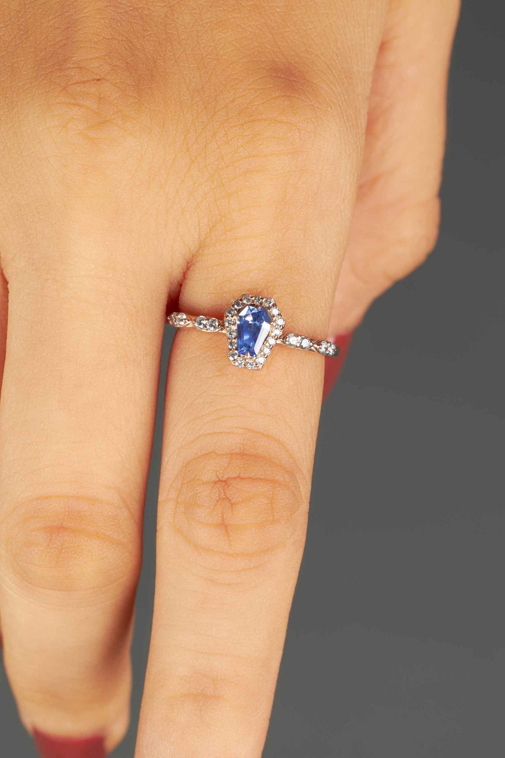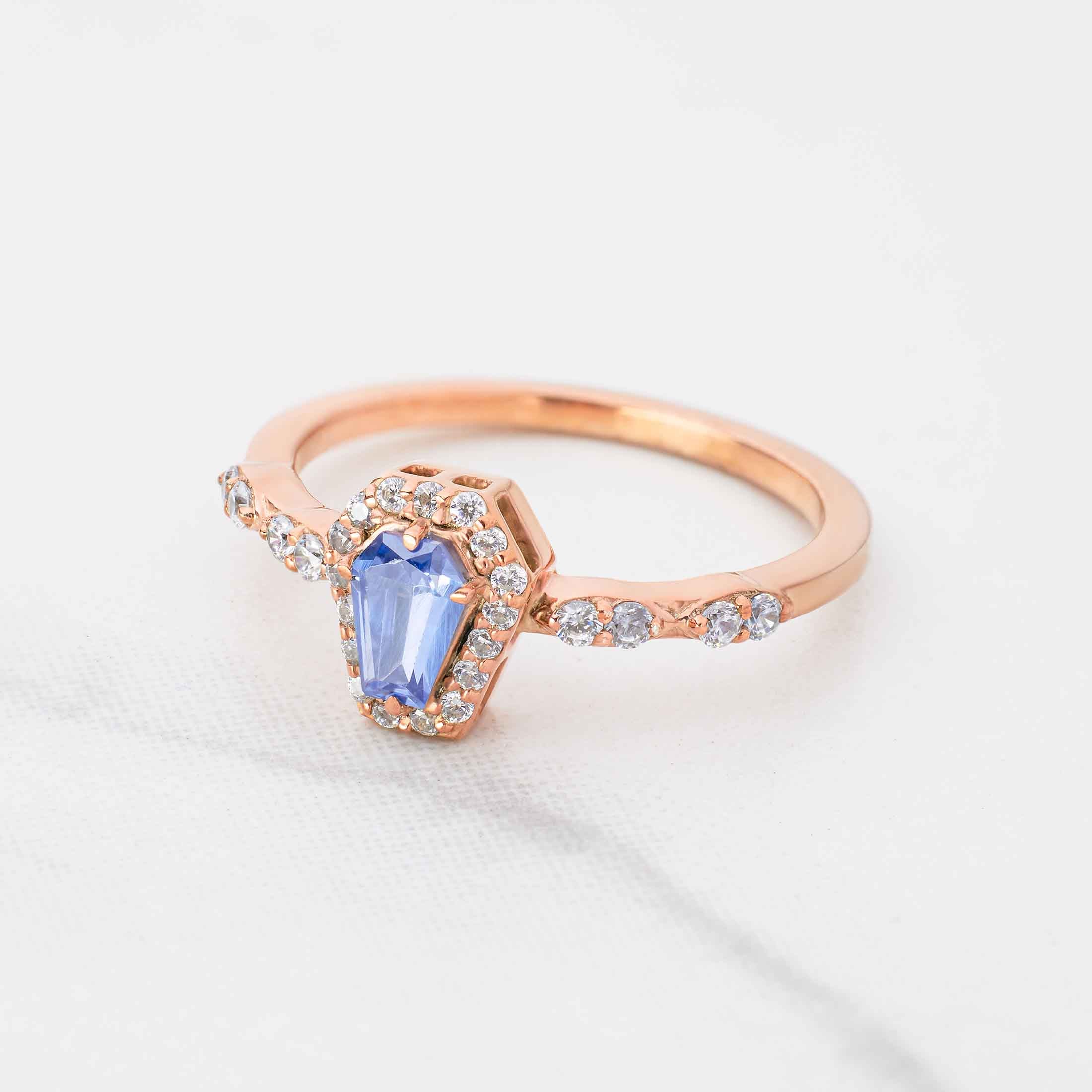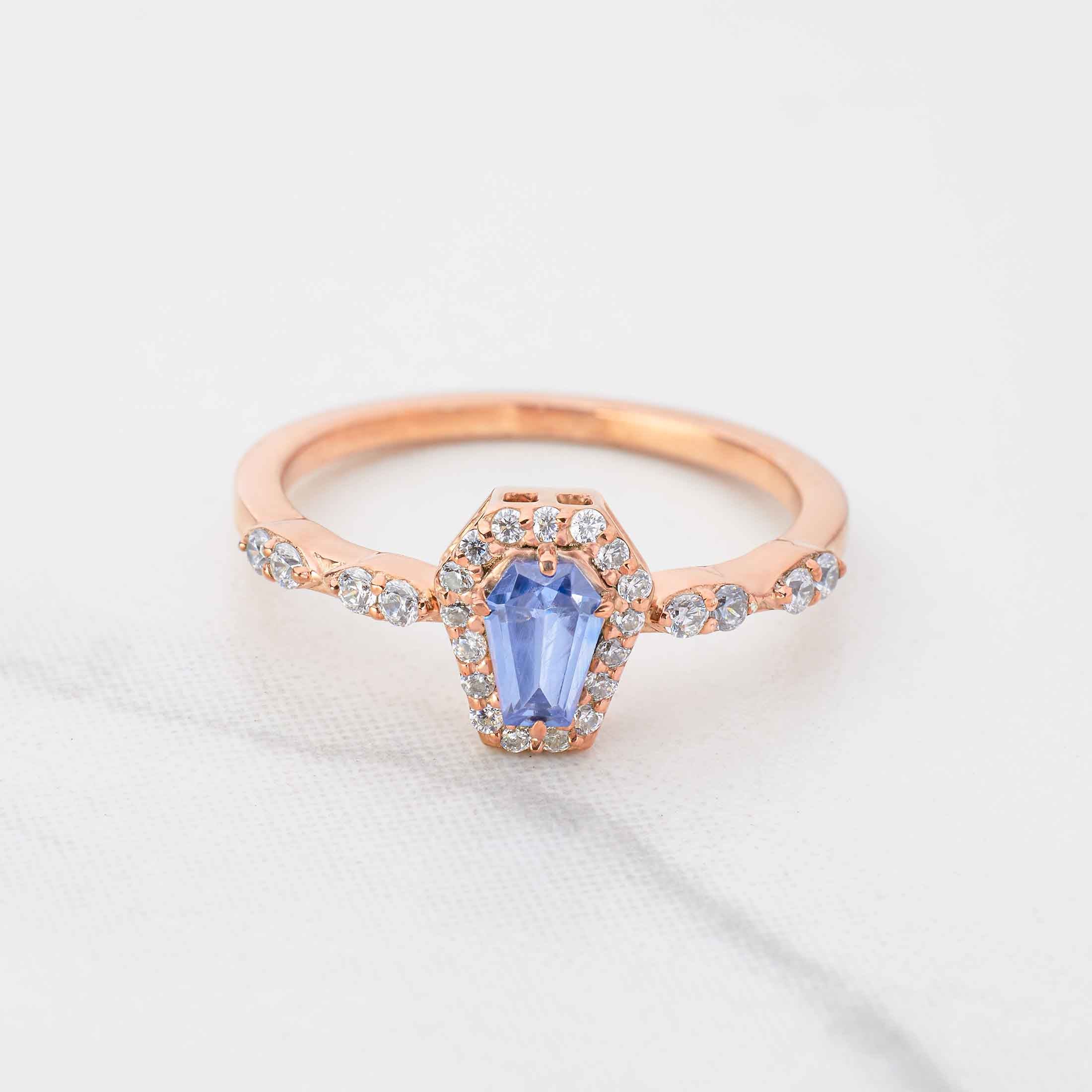 Blue Gemstone Coffin Ring Till Death Do Us Part Promise Ring