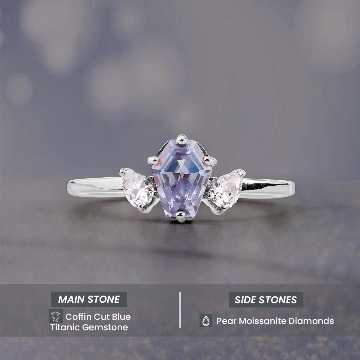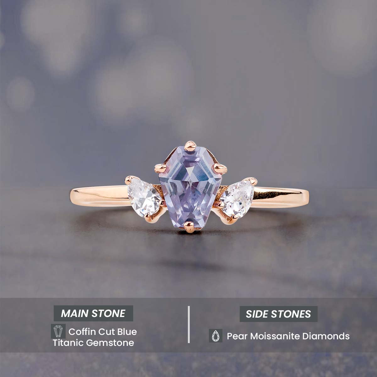 Learn moreCoffin Cut Blue Titanic Gemstone and Pear Moissanite 3 Stone Engagement Ring