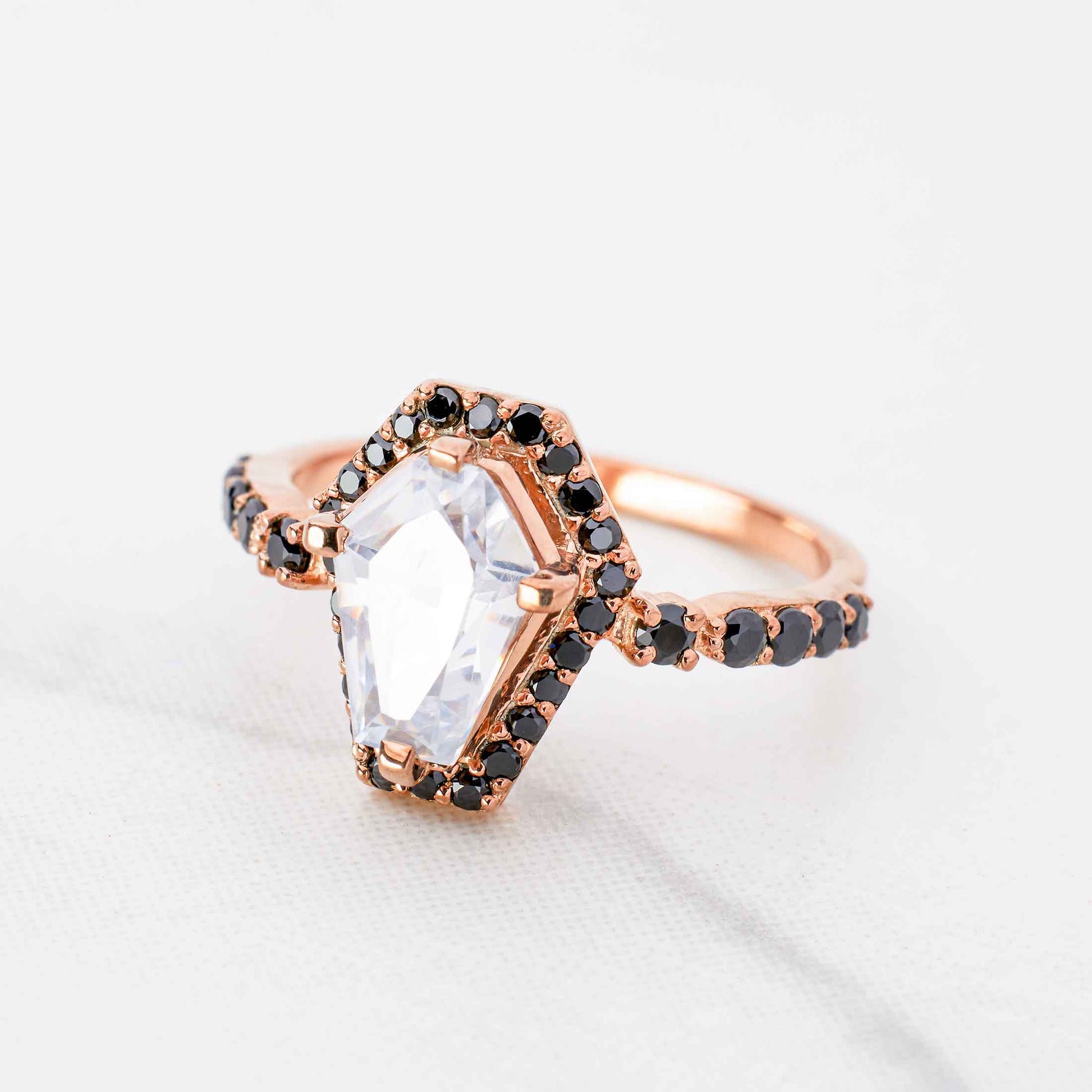 Coffin Cut Moissanite Ring Till Death Engagement Ring Rose Gold