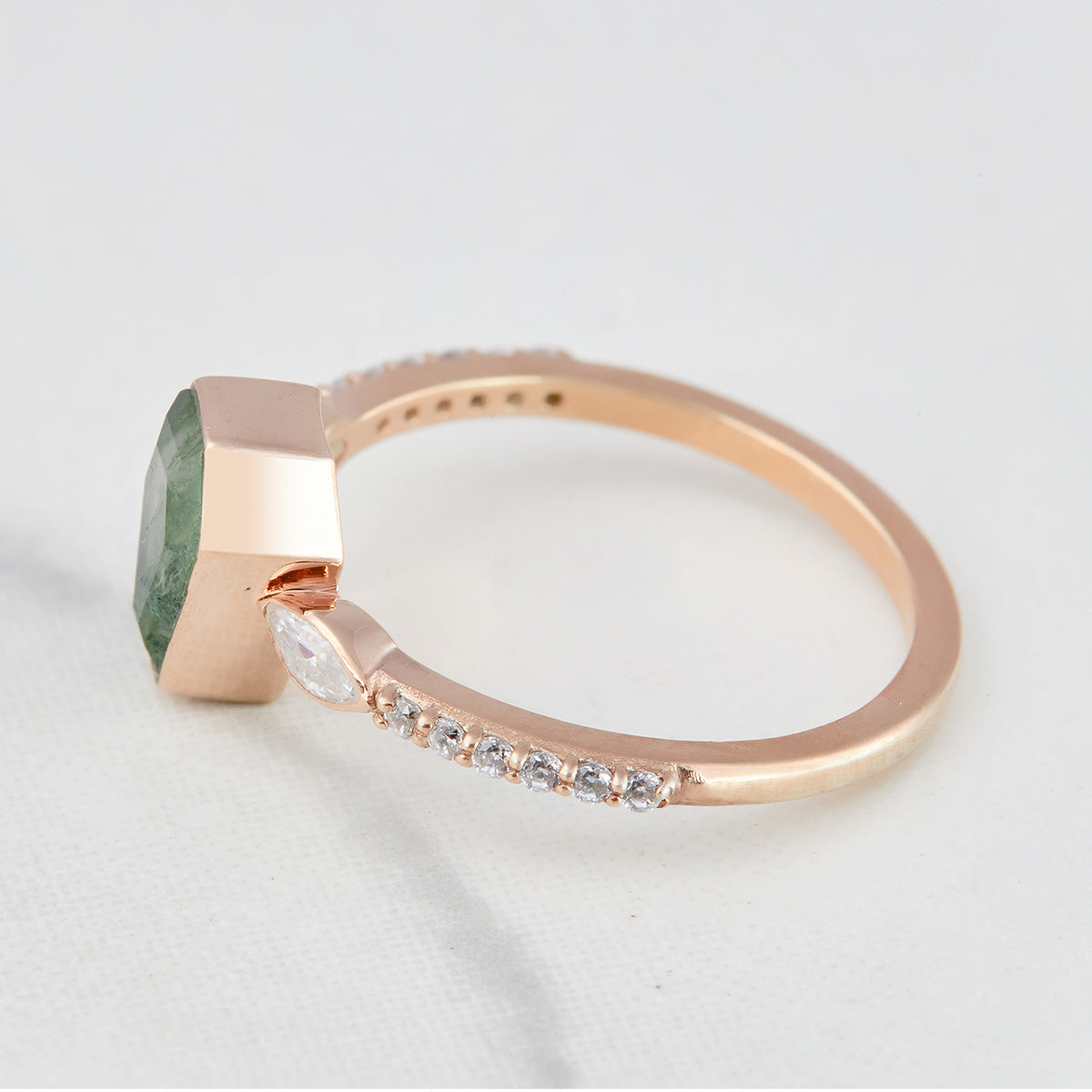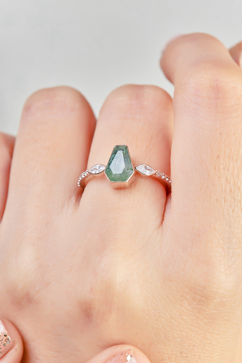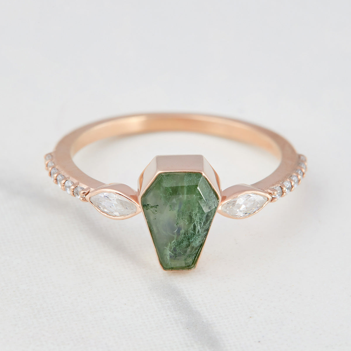 Learn moreCoffin Shaped Engagement Ring Moissanite and Moss Agate Ring