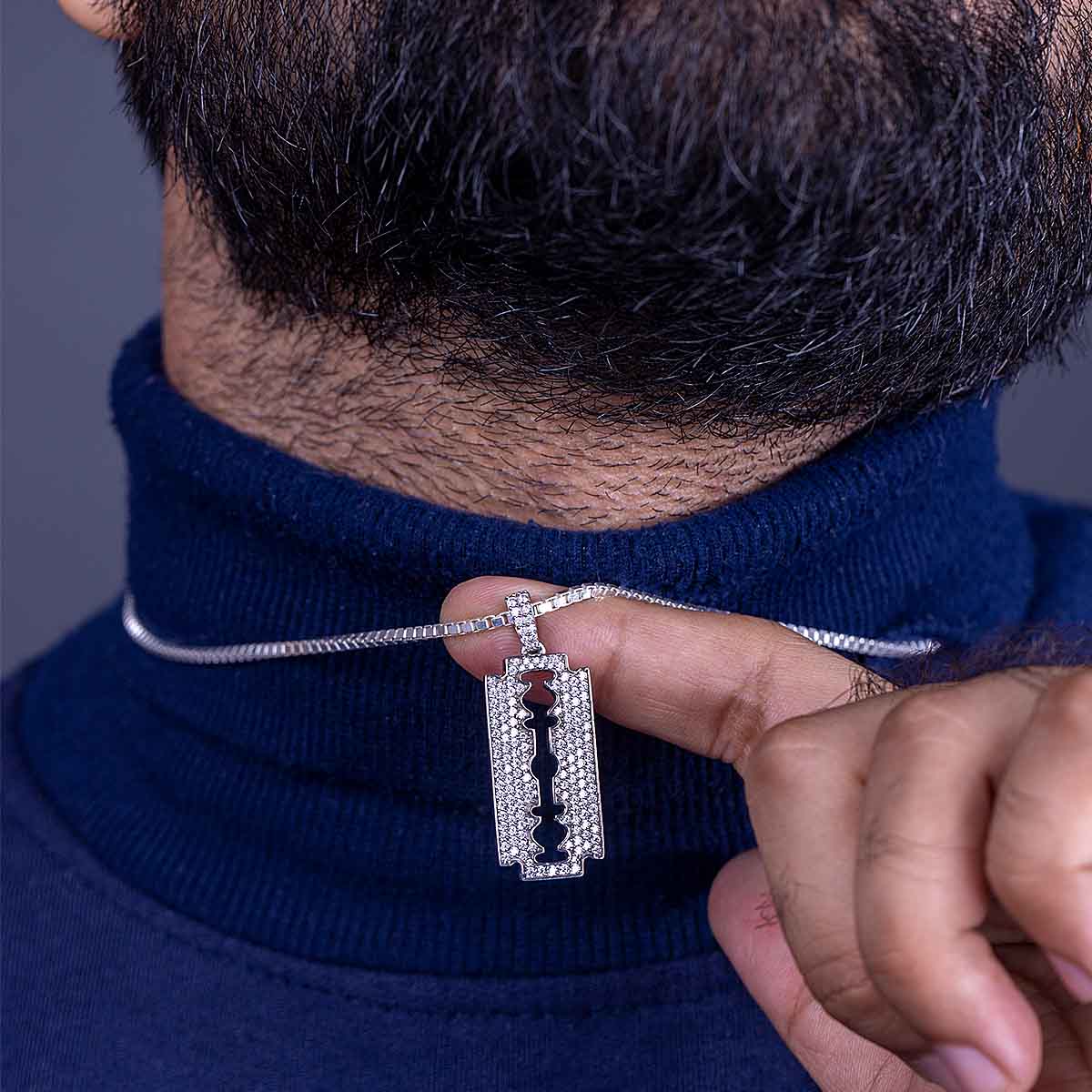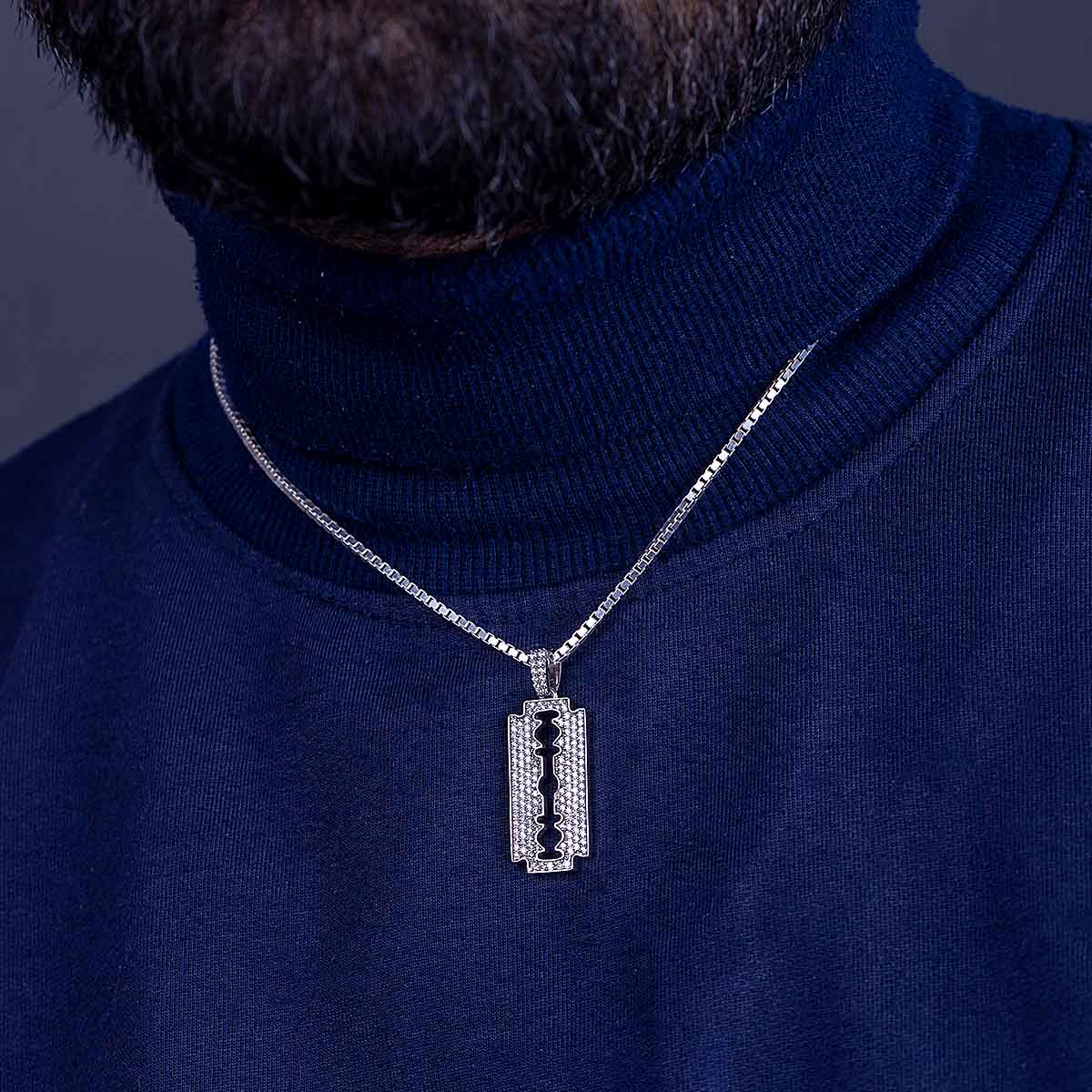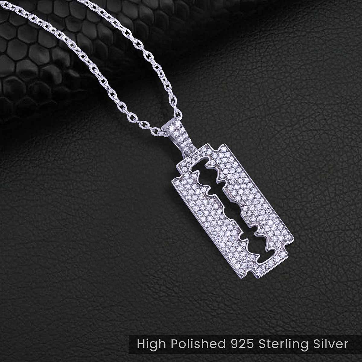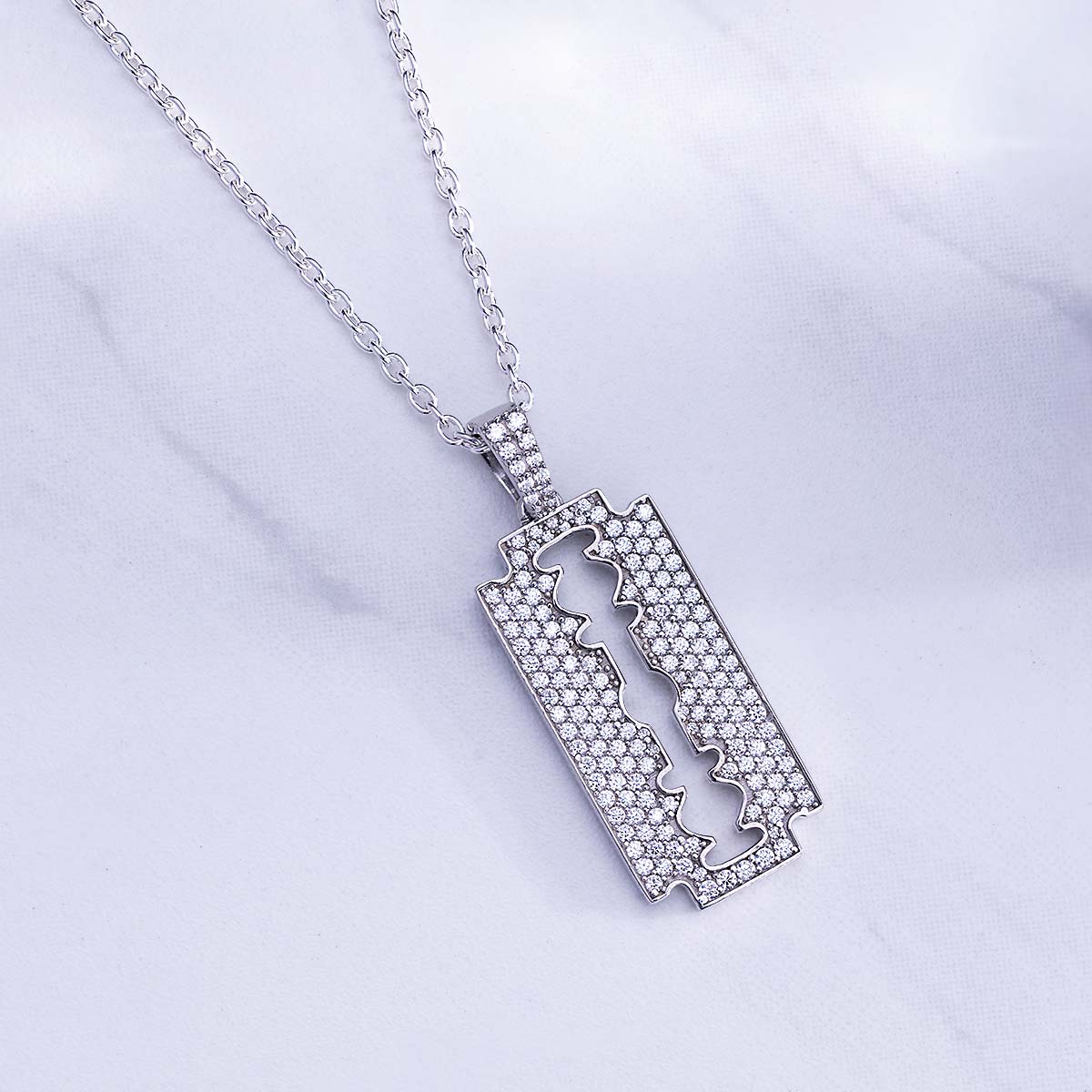 Iced Out Razor Blade Pendant Necklace Barber Jewelry Hip Hop