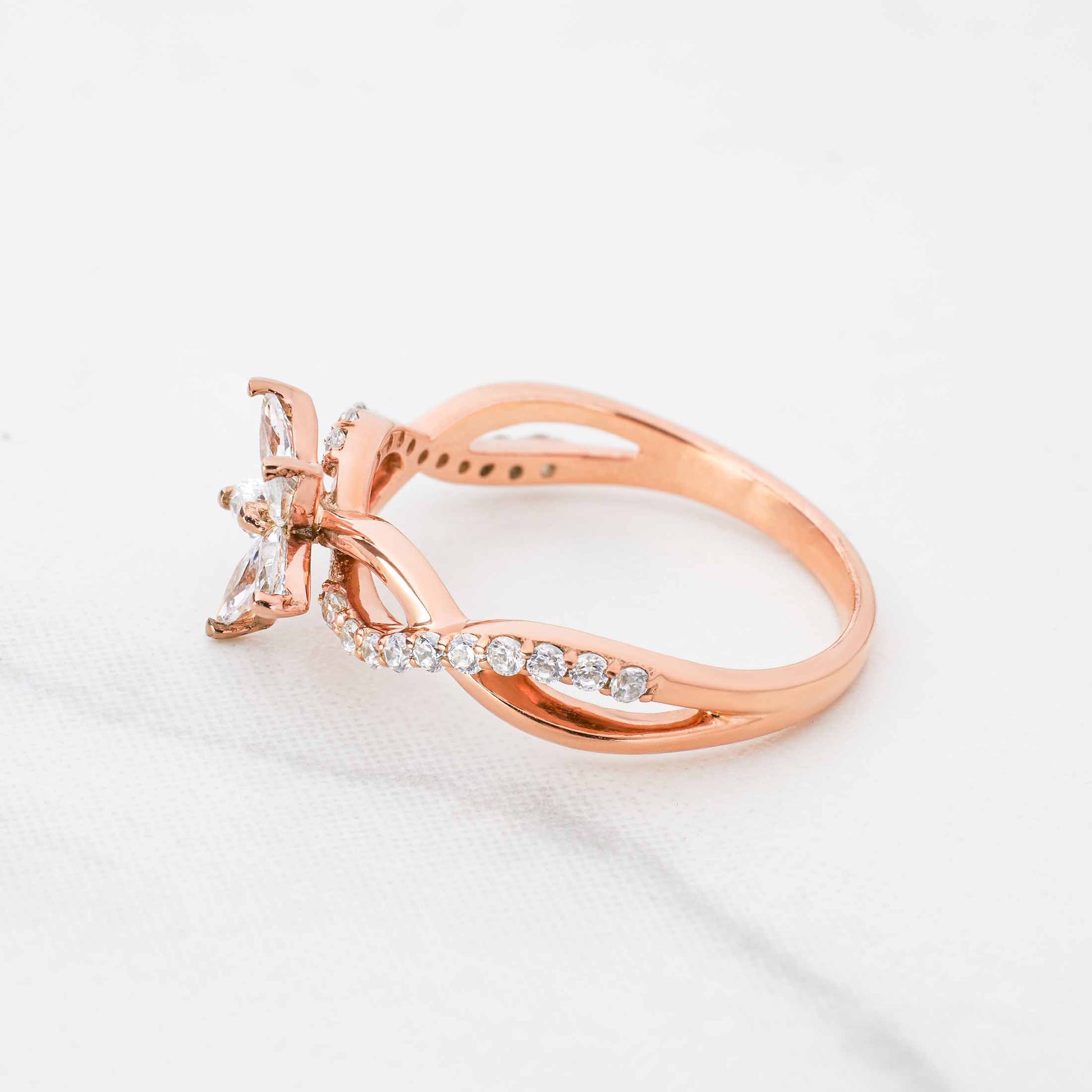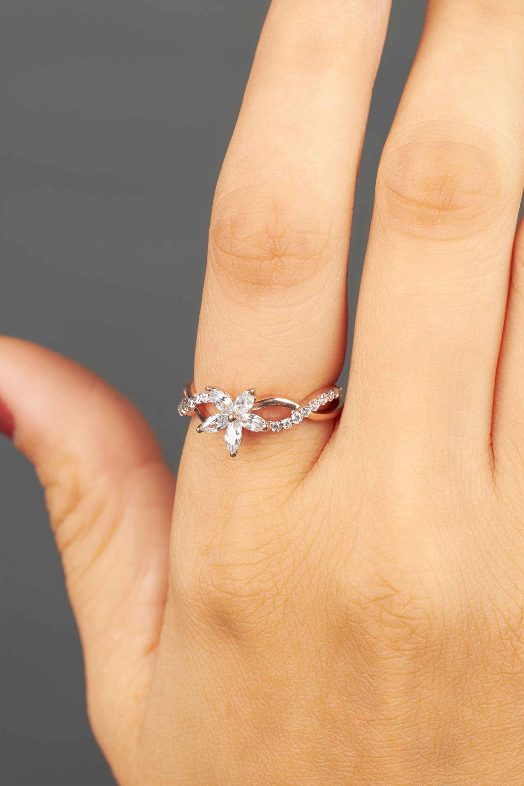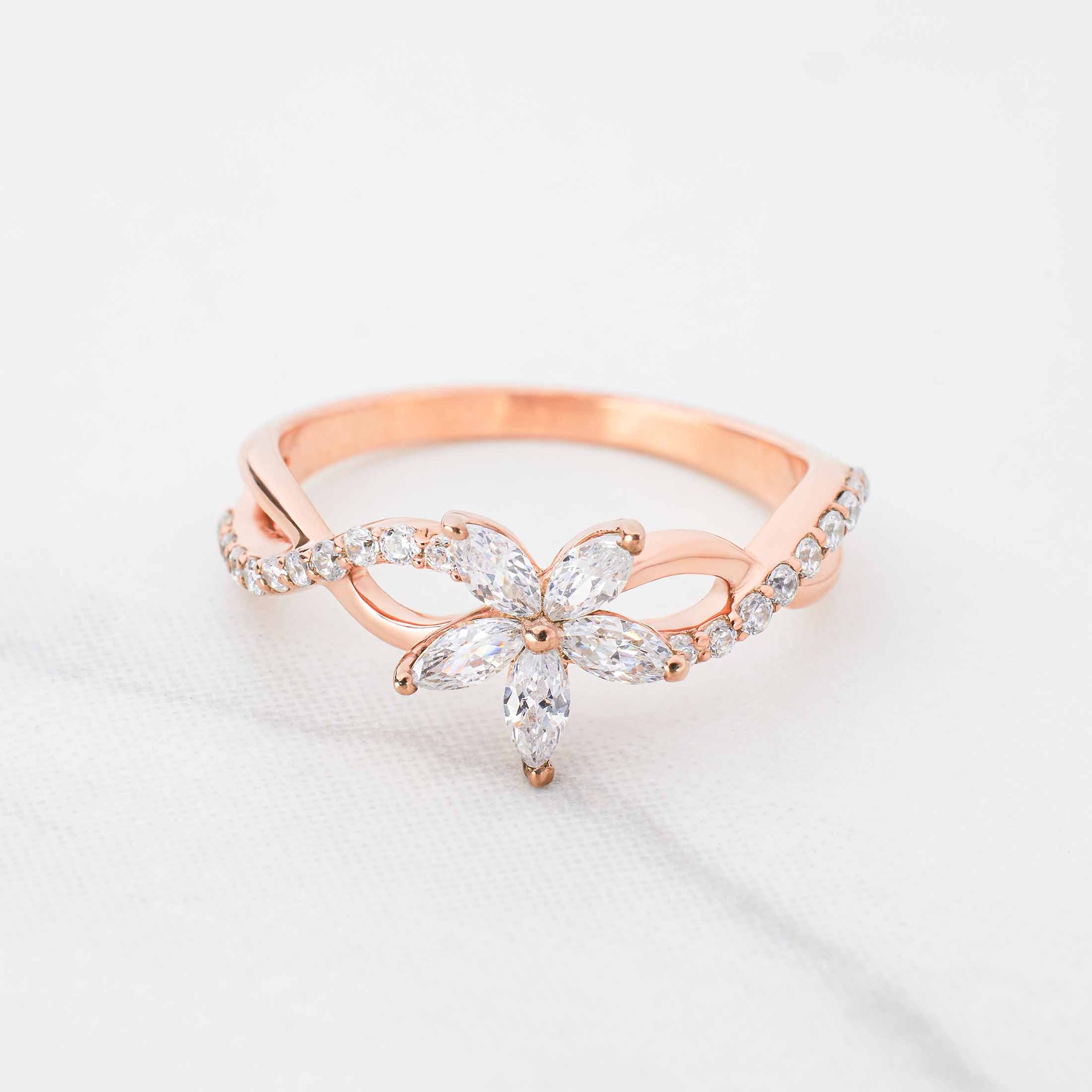 Marquise Diamond Flower Ring Infinity Floral Engagement Rings