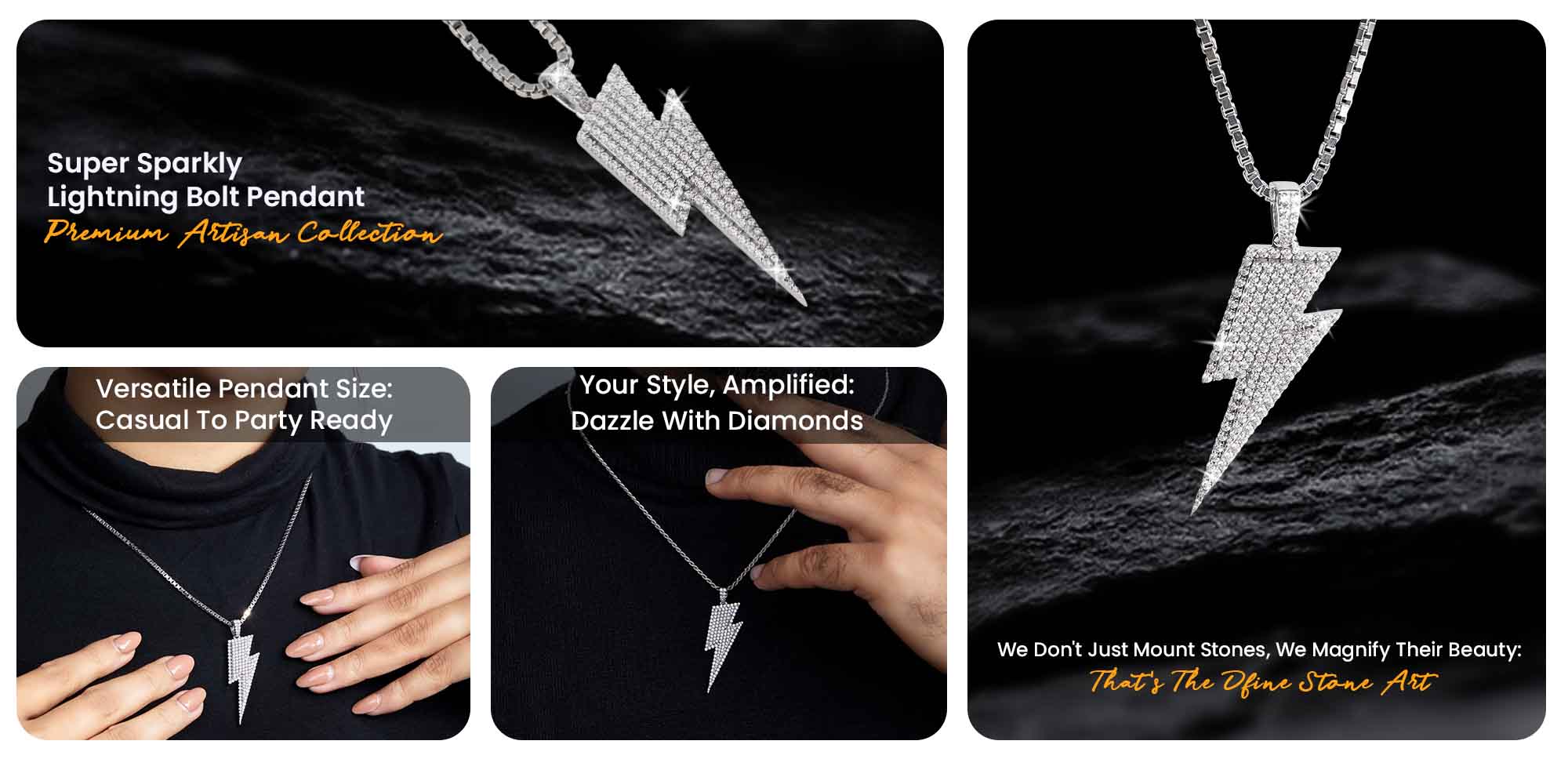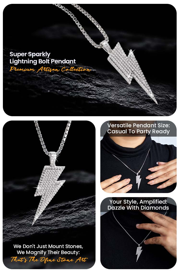Moissanite Iced Out Flash Lightning Bolt Pendant Necklace Silver