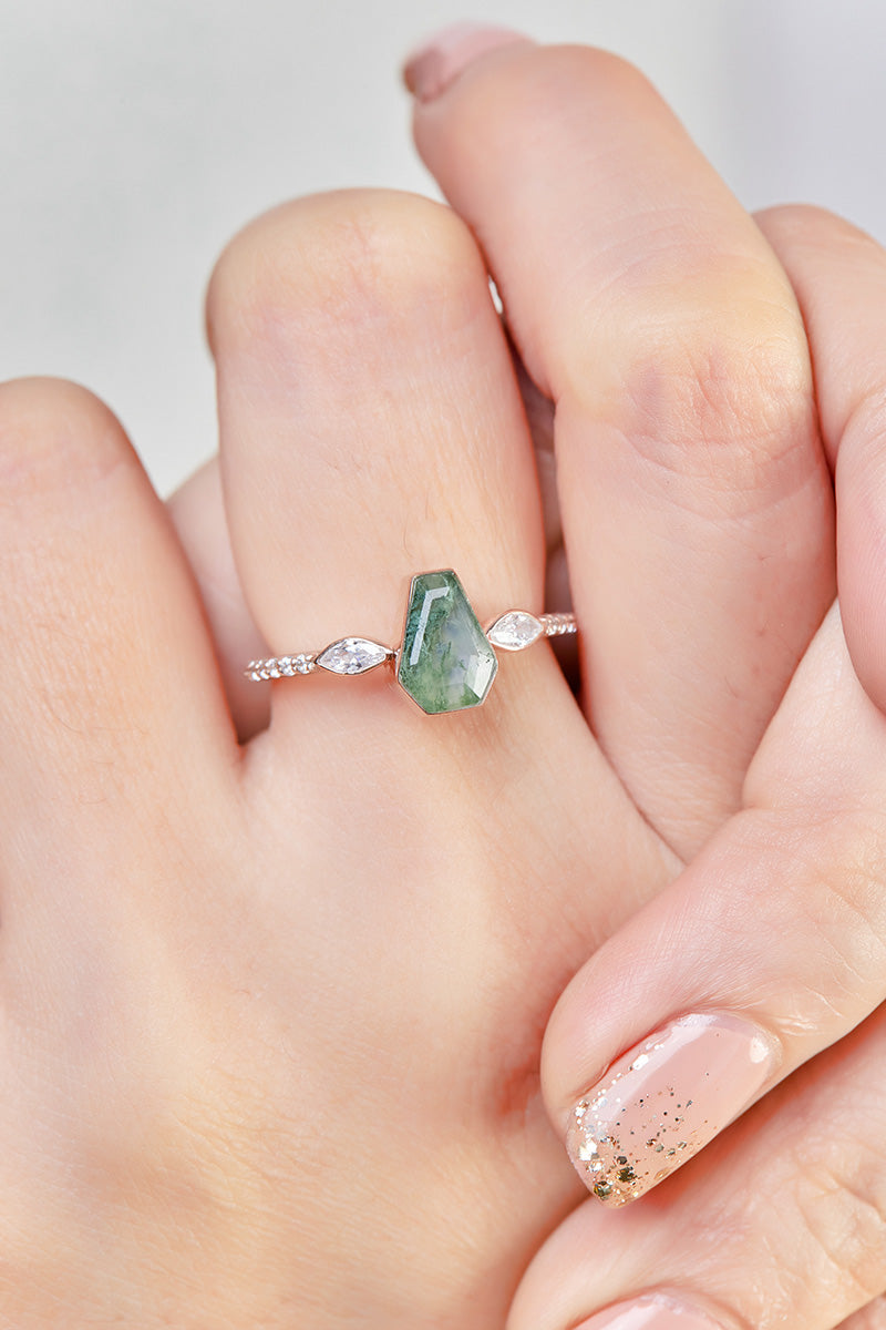 Learn moreMoss Agate Coffin Engagement Ring Till Death Gothic Jewelry