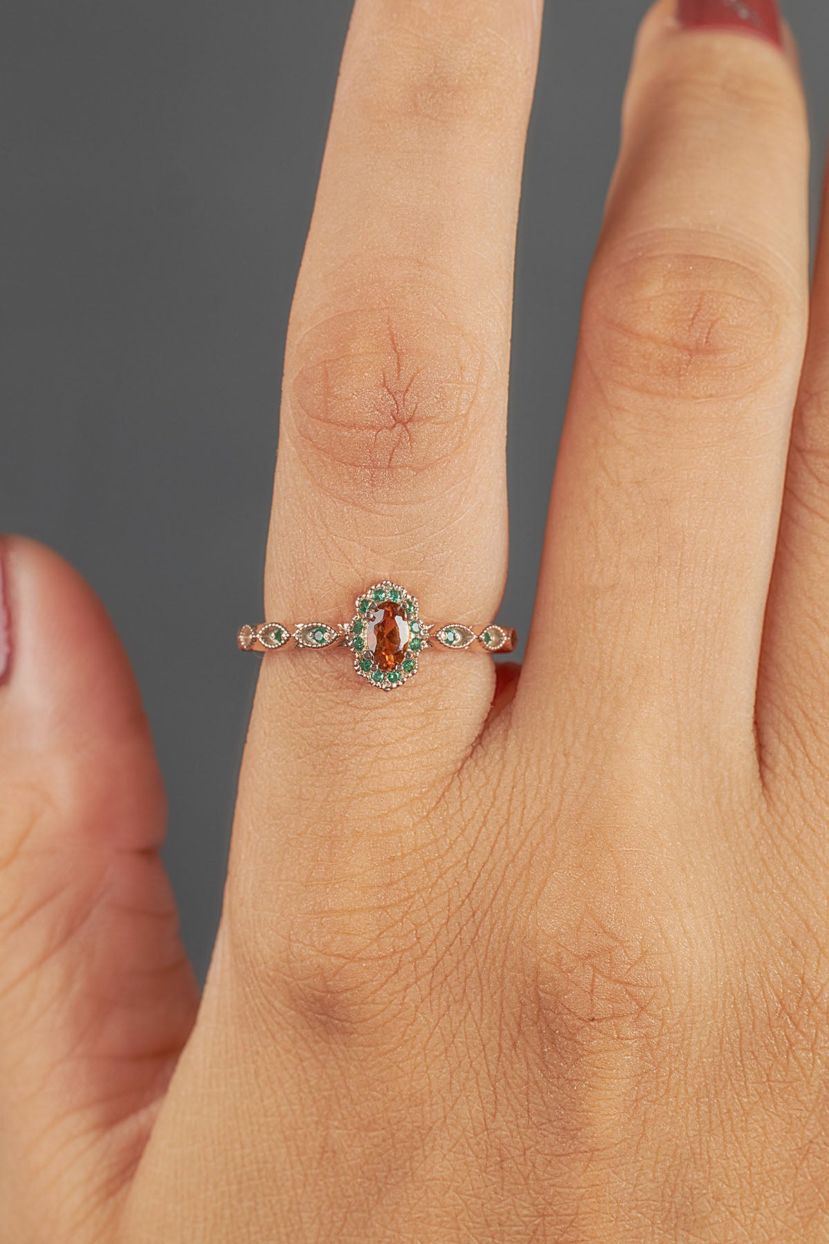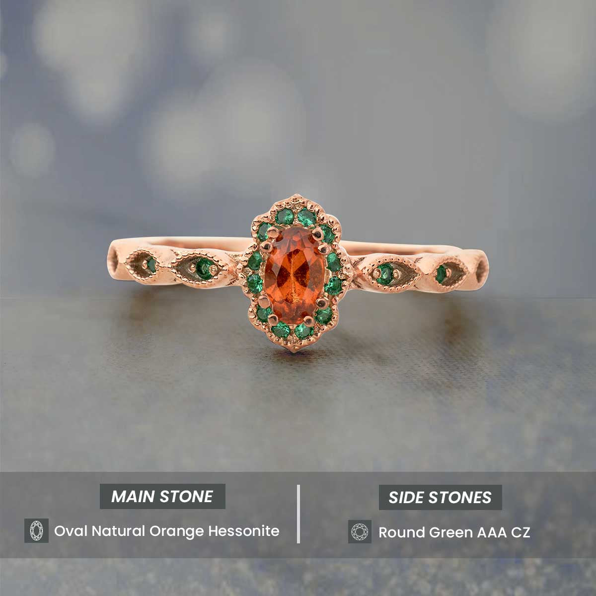 Learn moreOval Natural Hessonite Ring Milgrain Vintage Engagement Rings