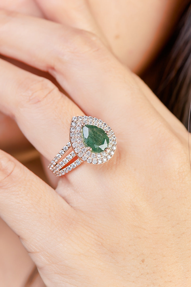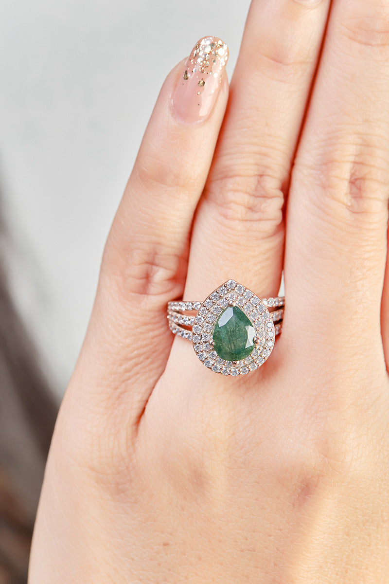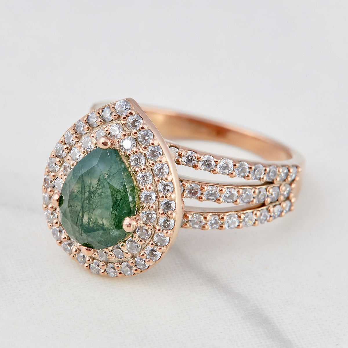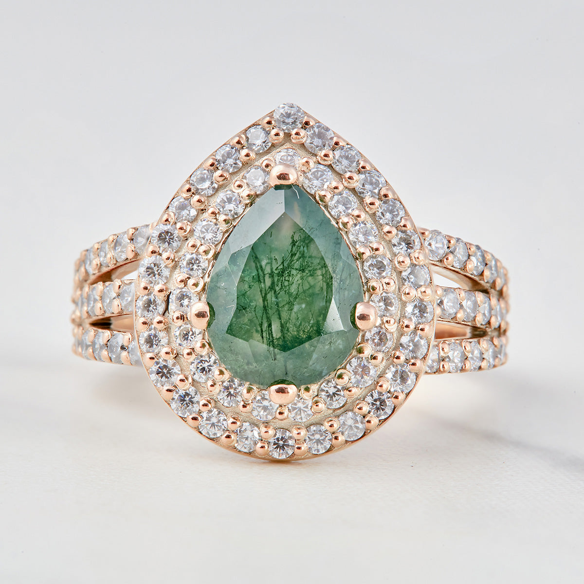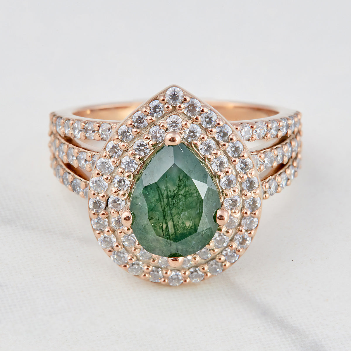 Learn morePear Moss Agate Engagement Ring Double Halo Moissanite Ring