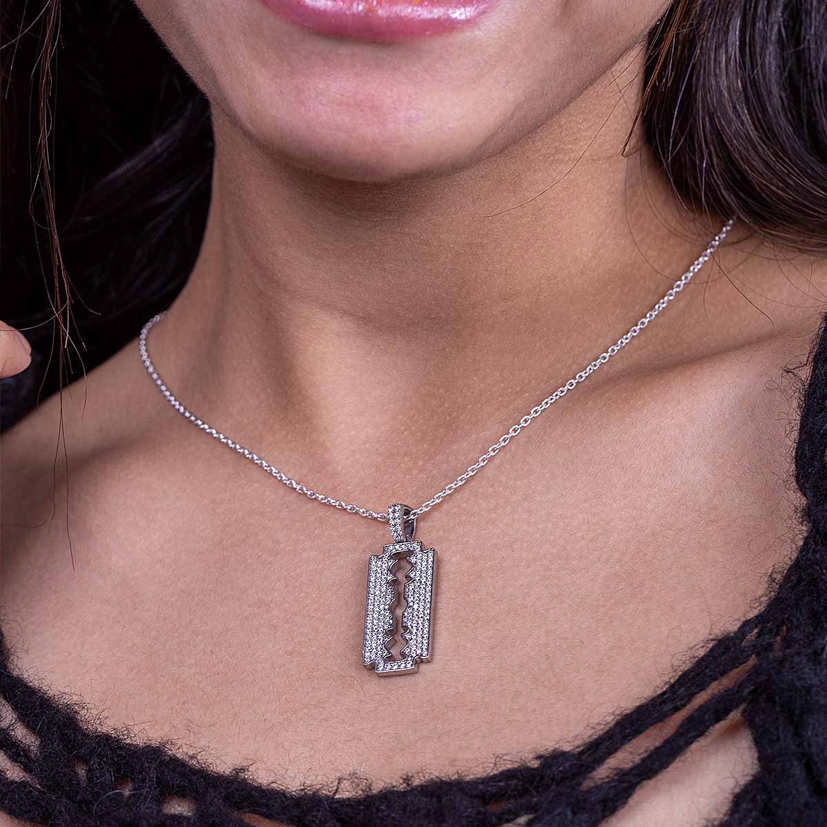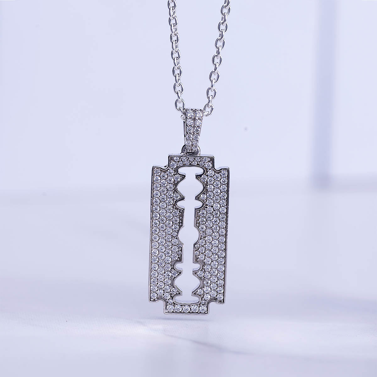 Razor Blade Pendant Necklace Moissanite Iced Out Barber Jewelry