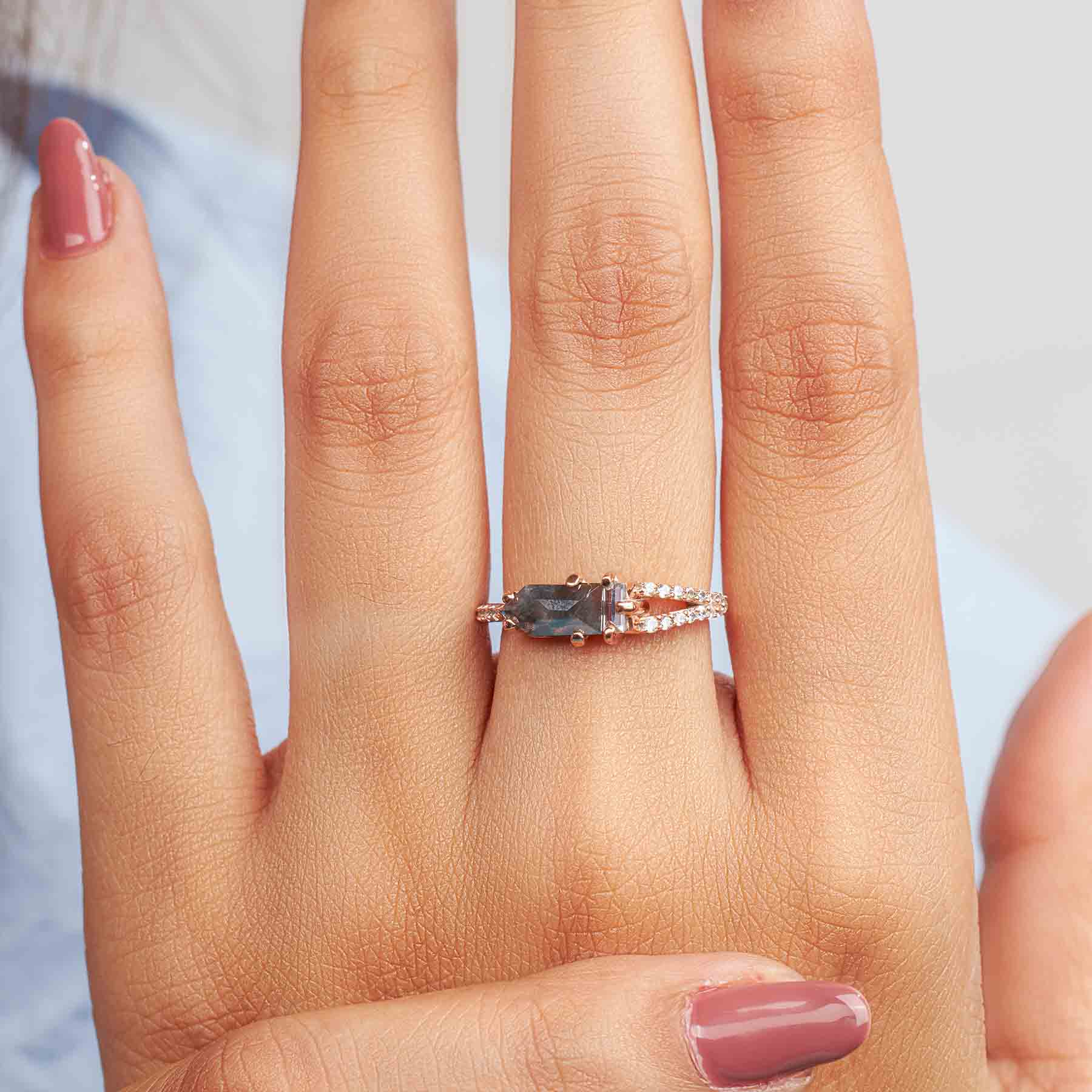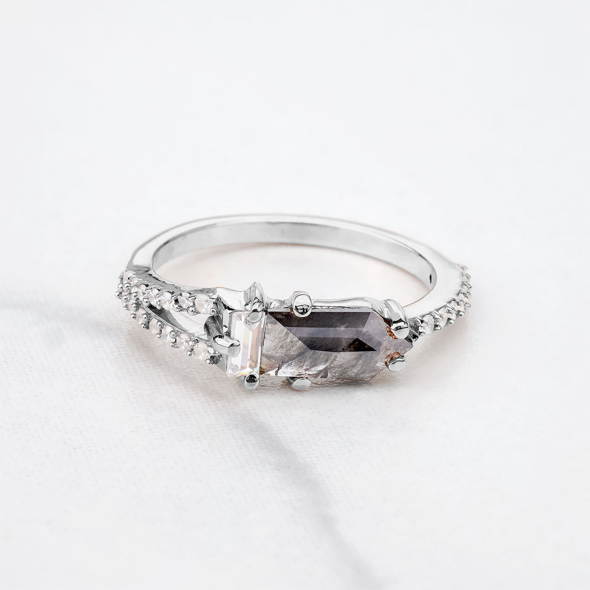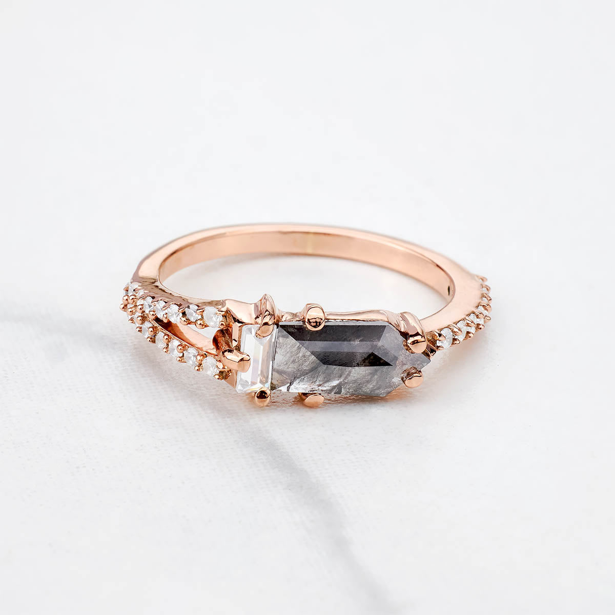 Learn moreRose Cut Bullet Natural Salt and Pepper Diamond Promise Ring