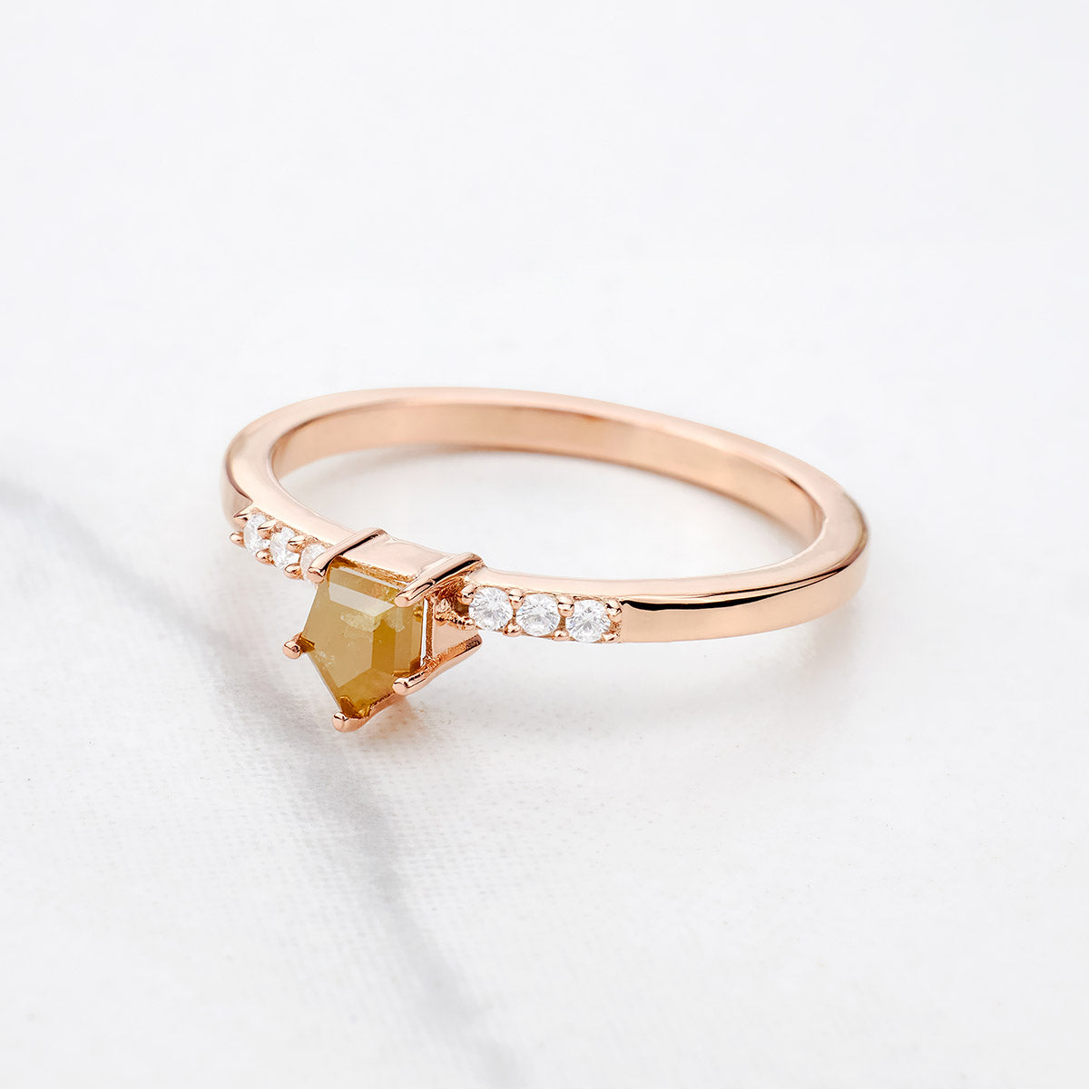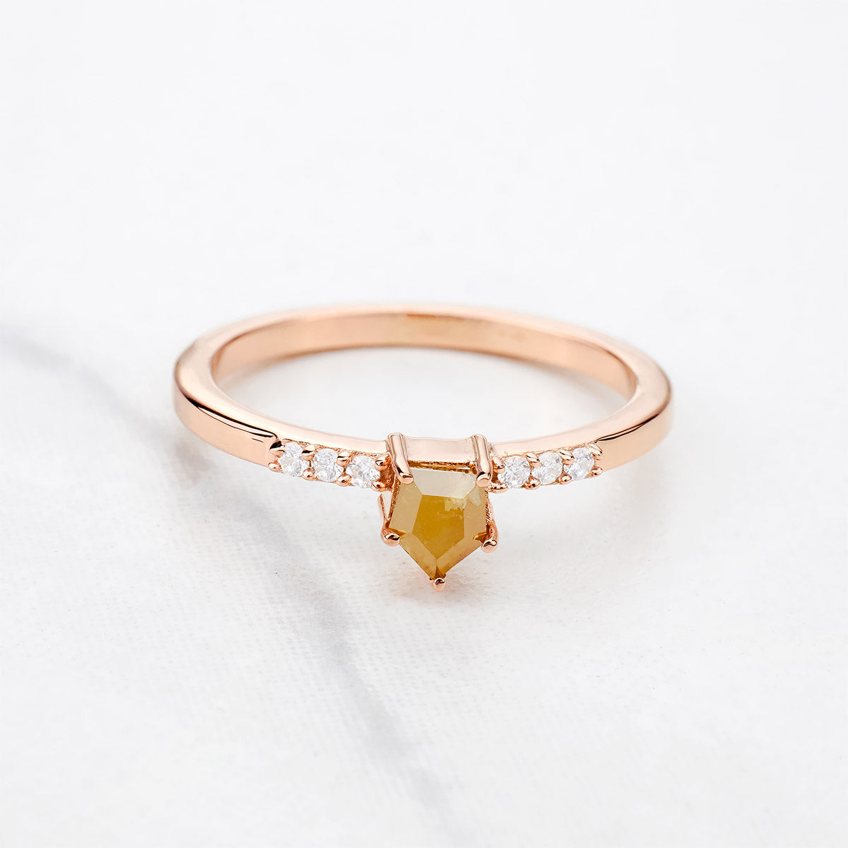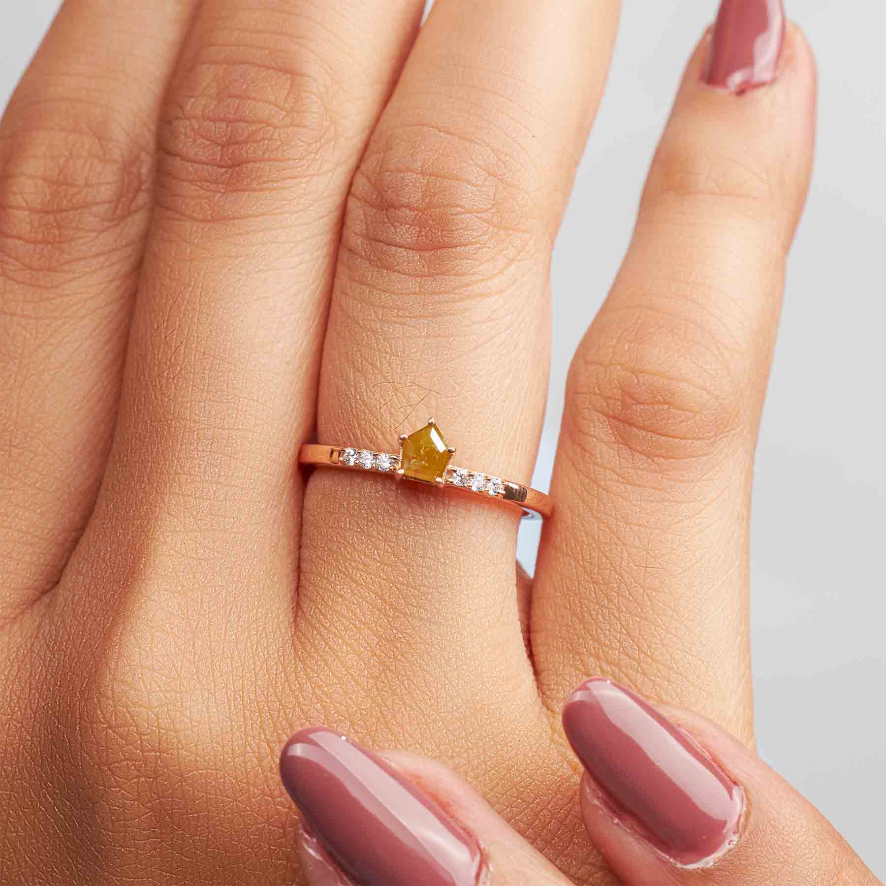 Shield Cut Yellow Natural Rustic Diamond Dainty Engagement Ring