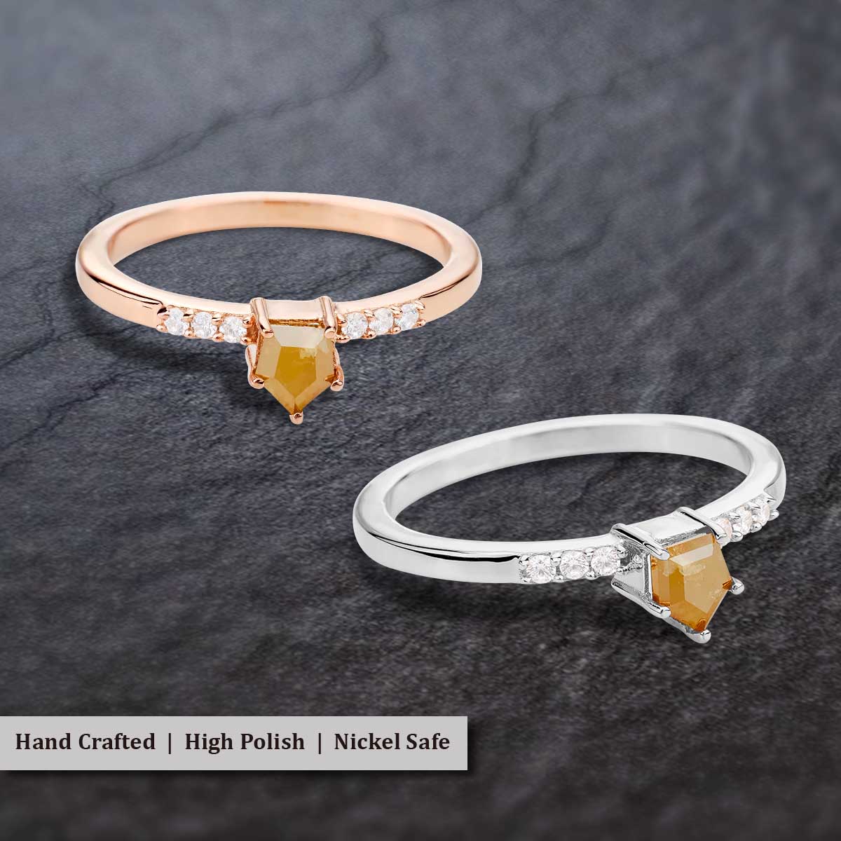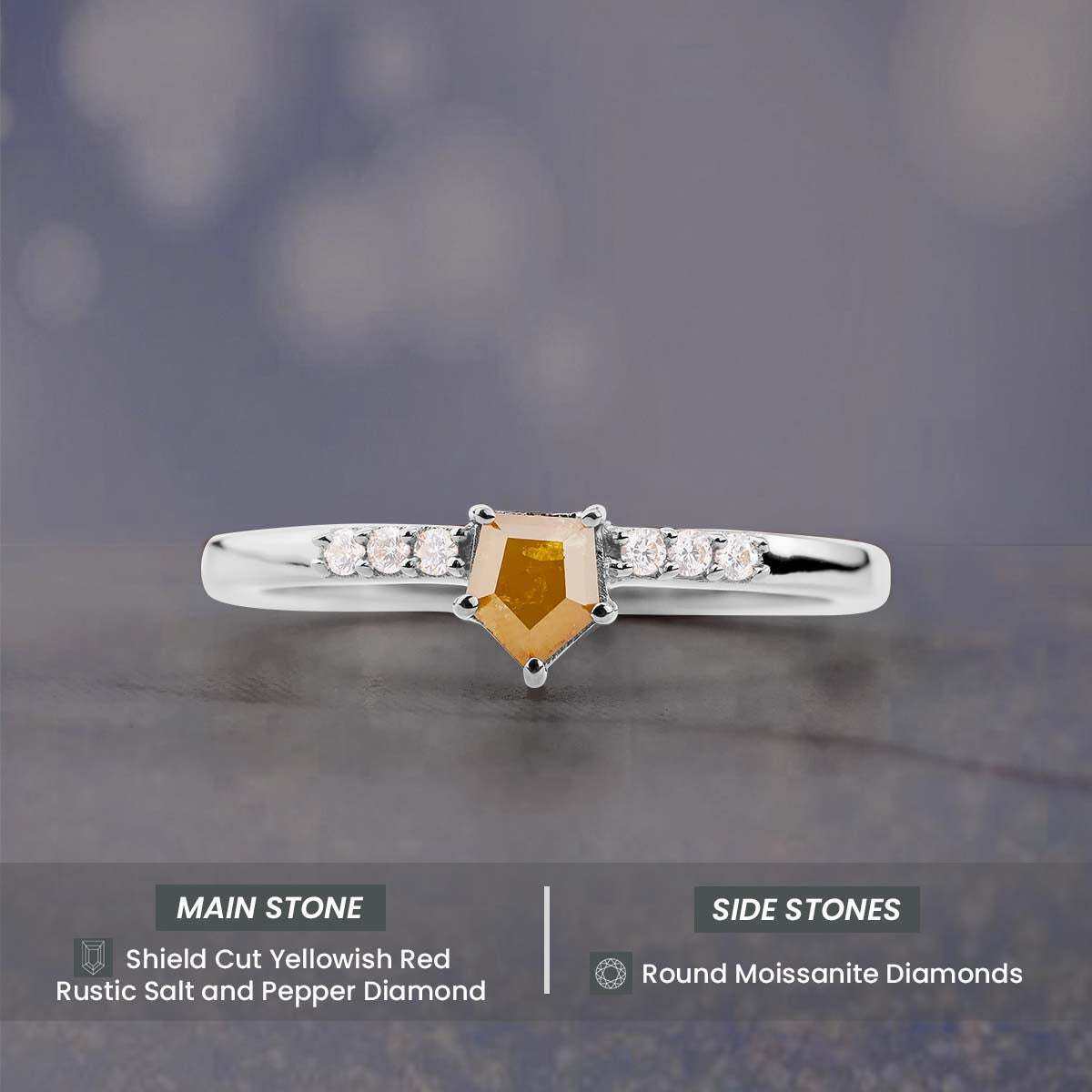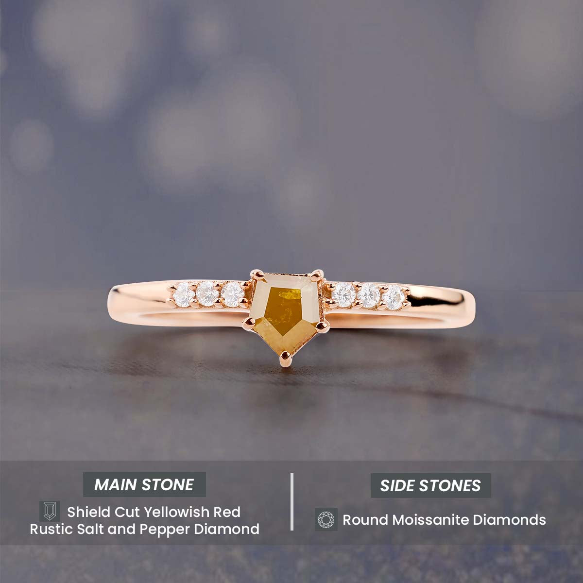 Shield Cut Yellow Natural Rustic Diamond Dainty Engagement Ring