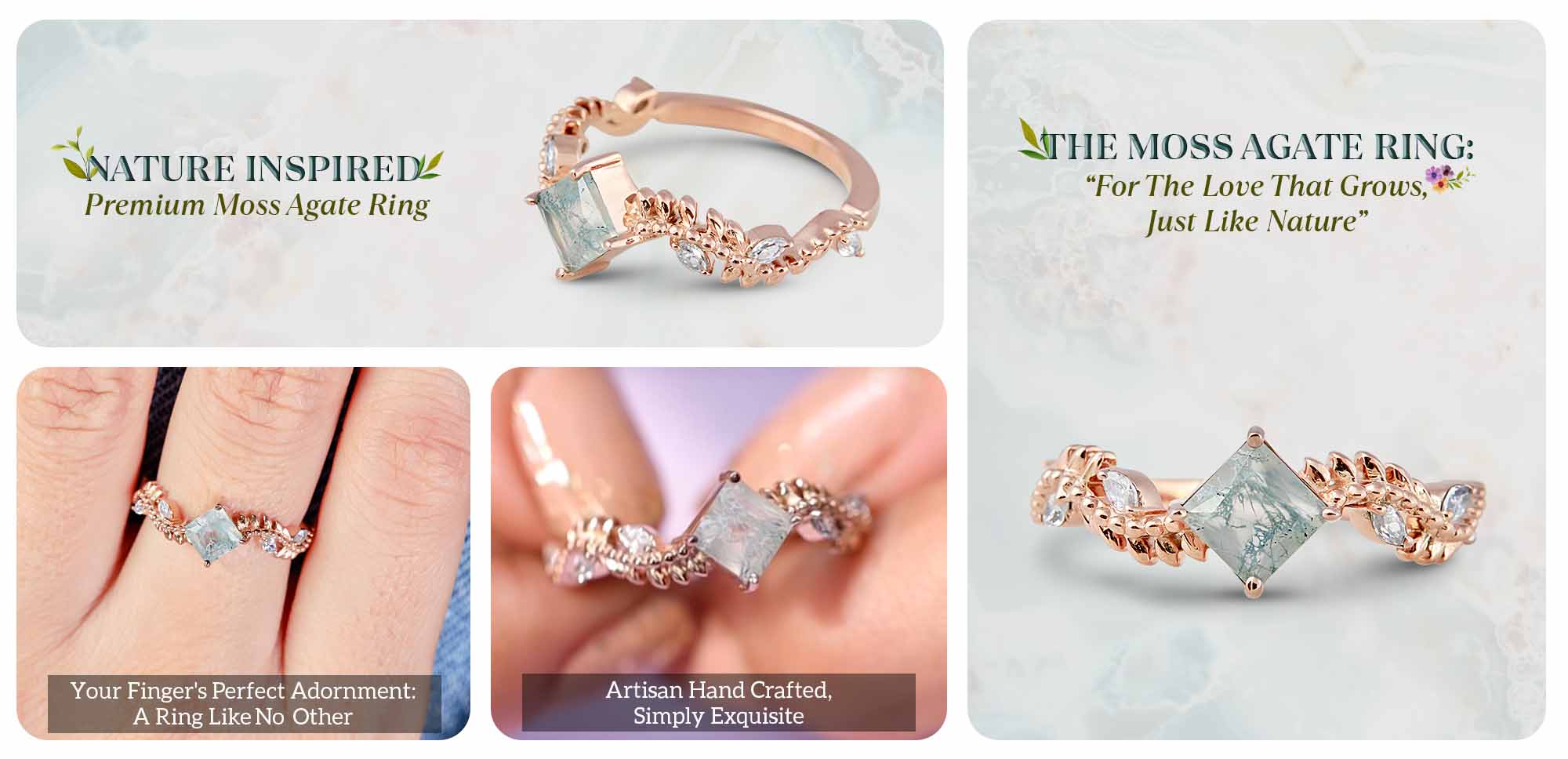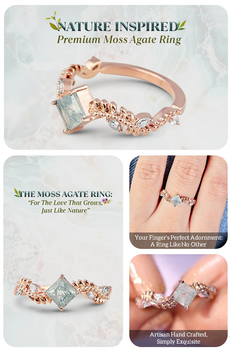 Learn more0.80CT Moss Agate Engagement Ring Leaf Vine Floral Nature Ring