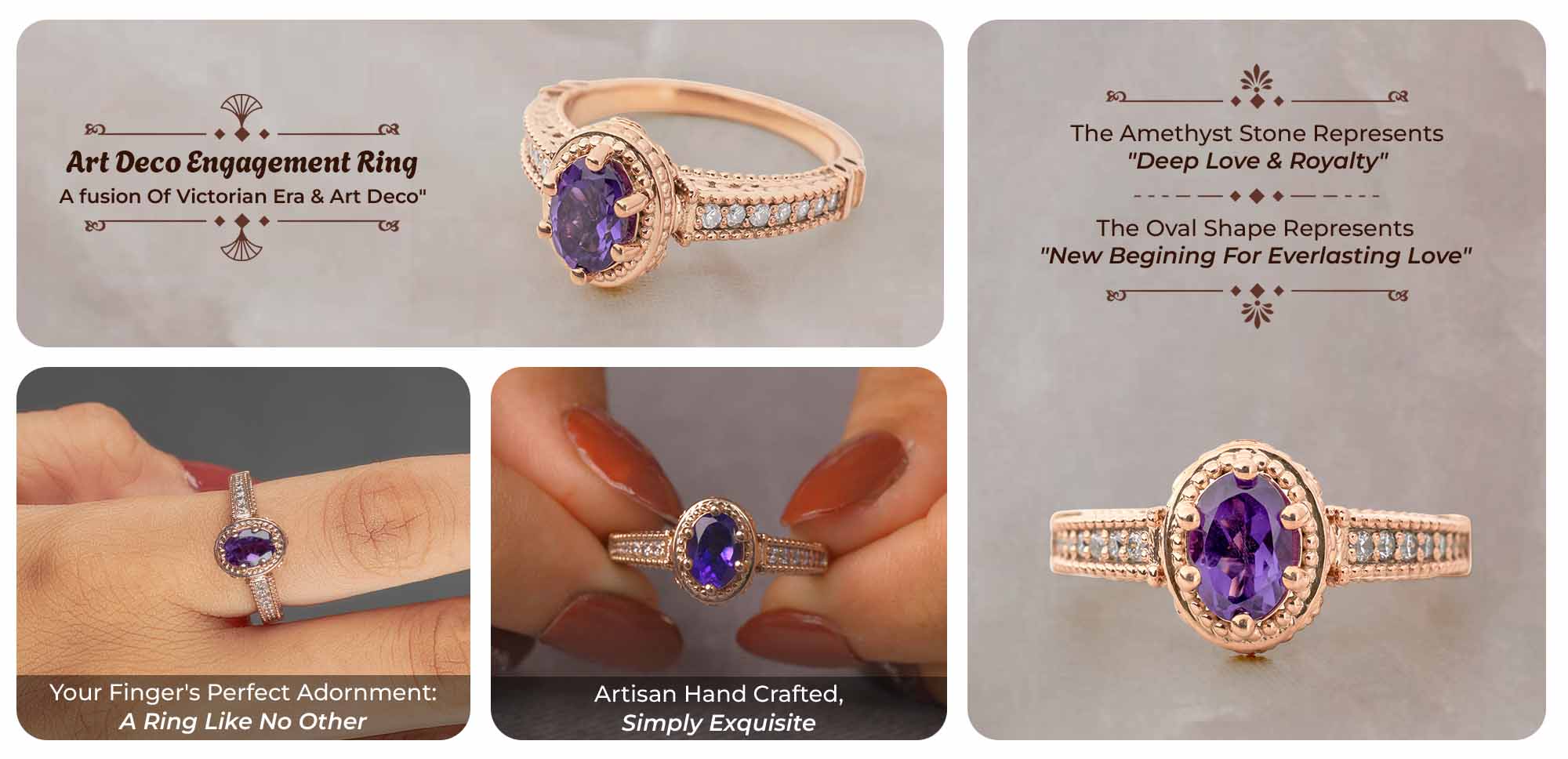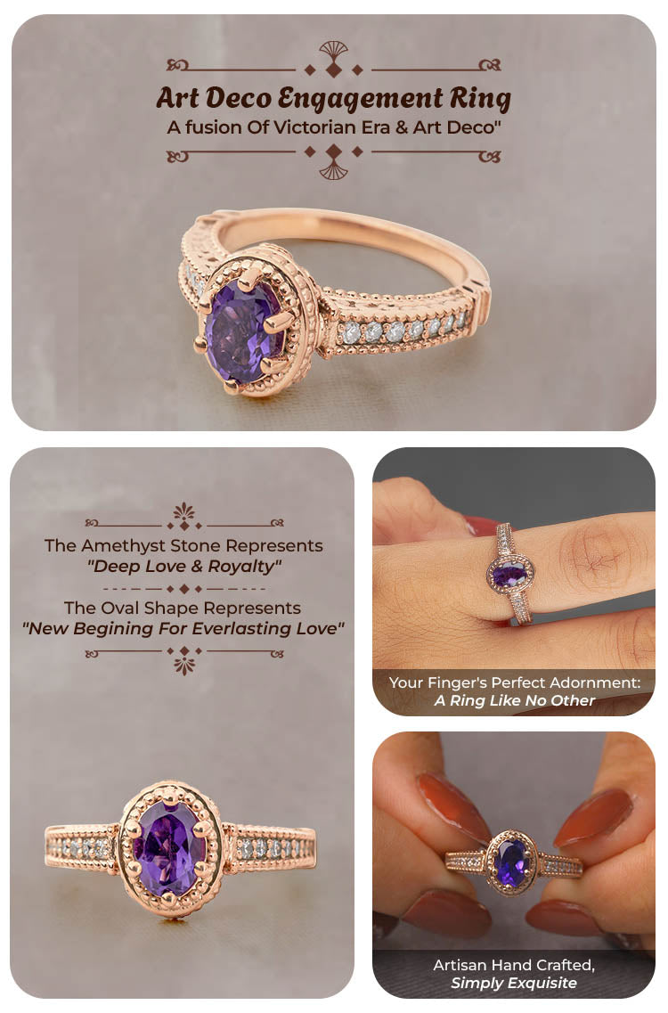 Learn moreAmethyst Art Deco Engagement Ring Set 1920's Vintage Inspired