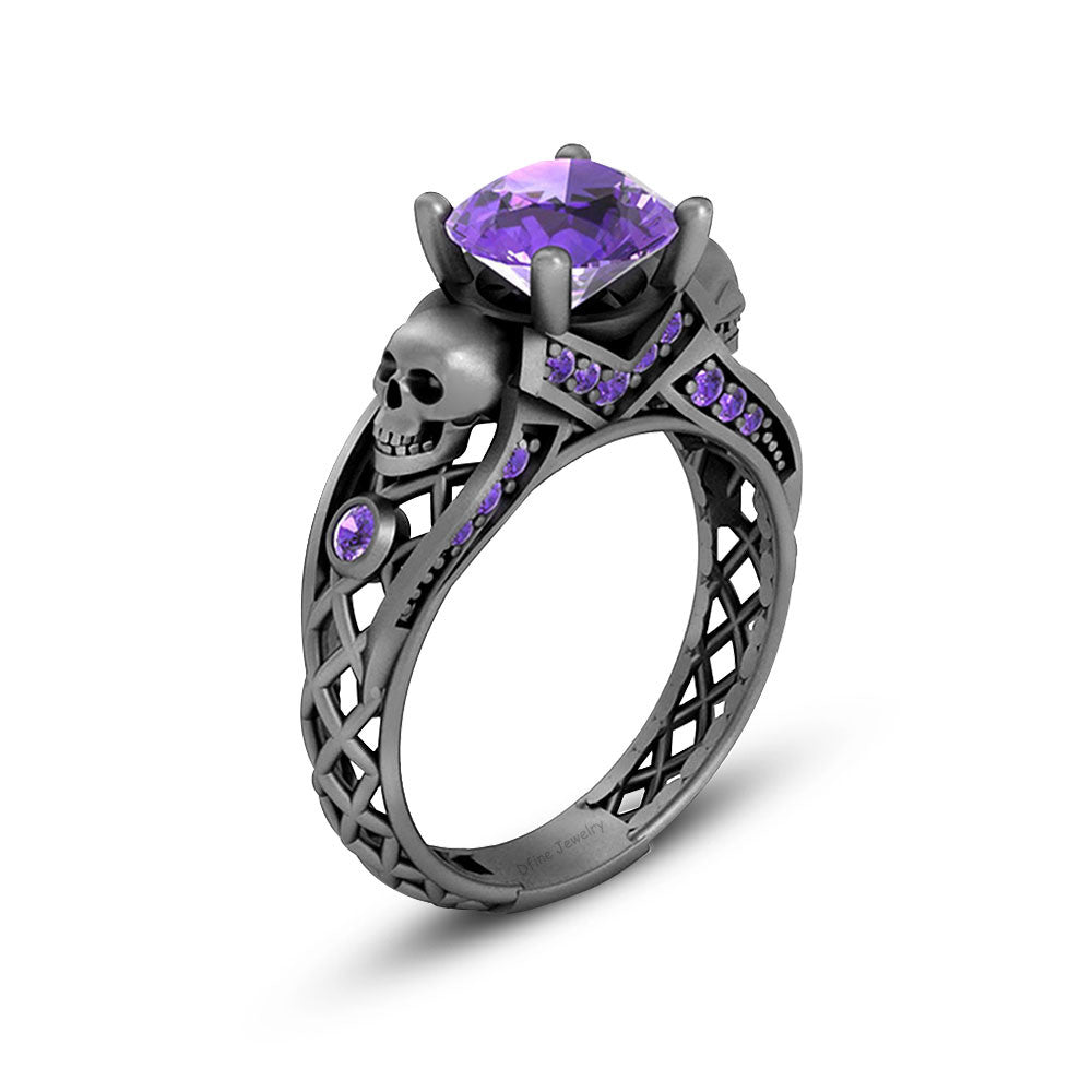 Amethyst Skull Engagement Ring Skull Ring For Women Gun Metal Finish