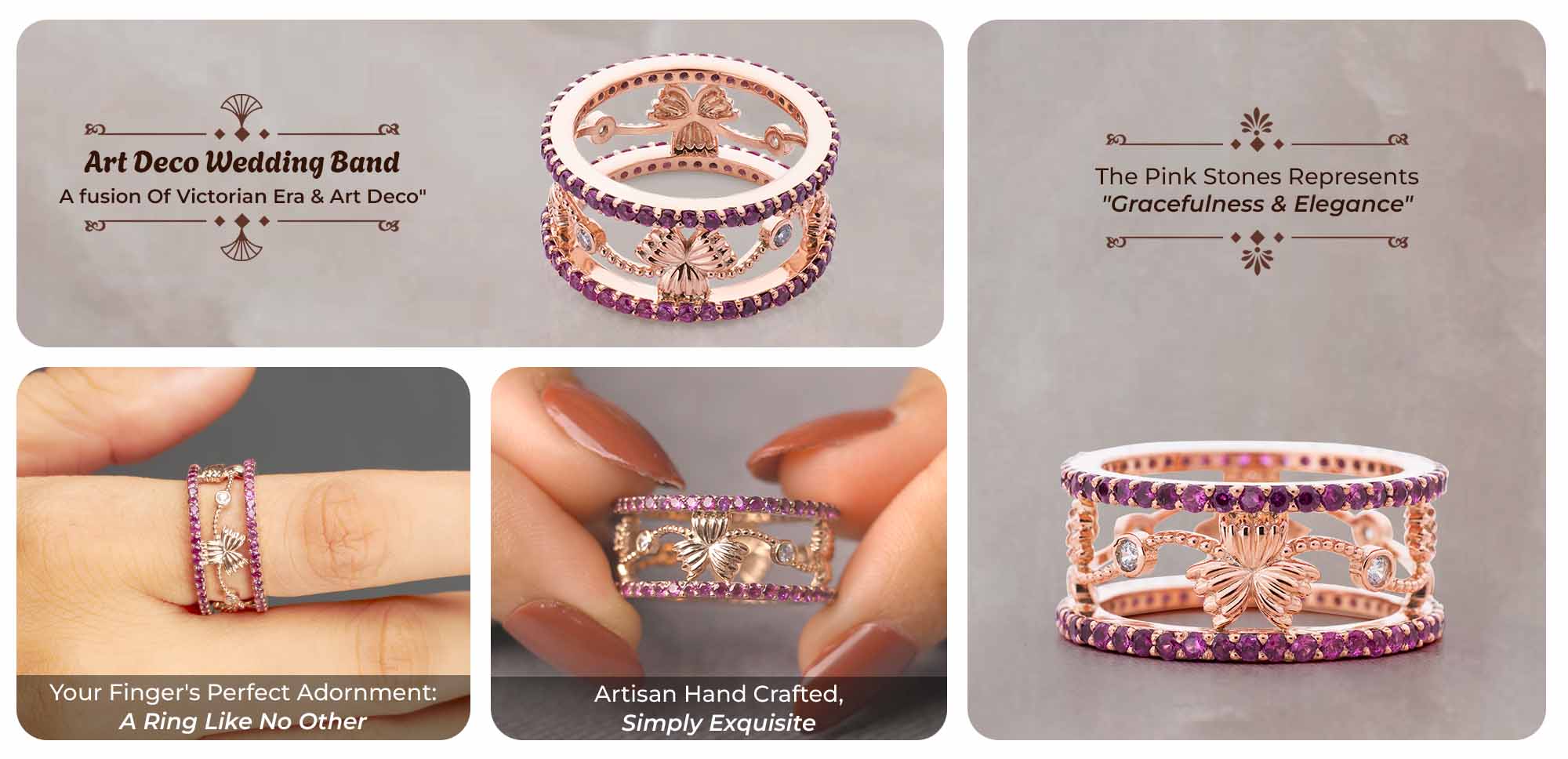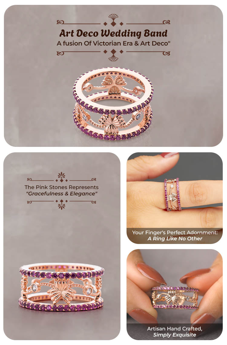 Learn moreArt Deco Wedding Band Pink CZ Rose Gold Anniversary Band Gift
