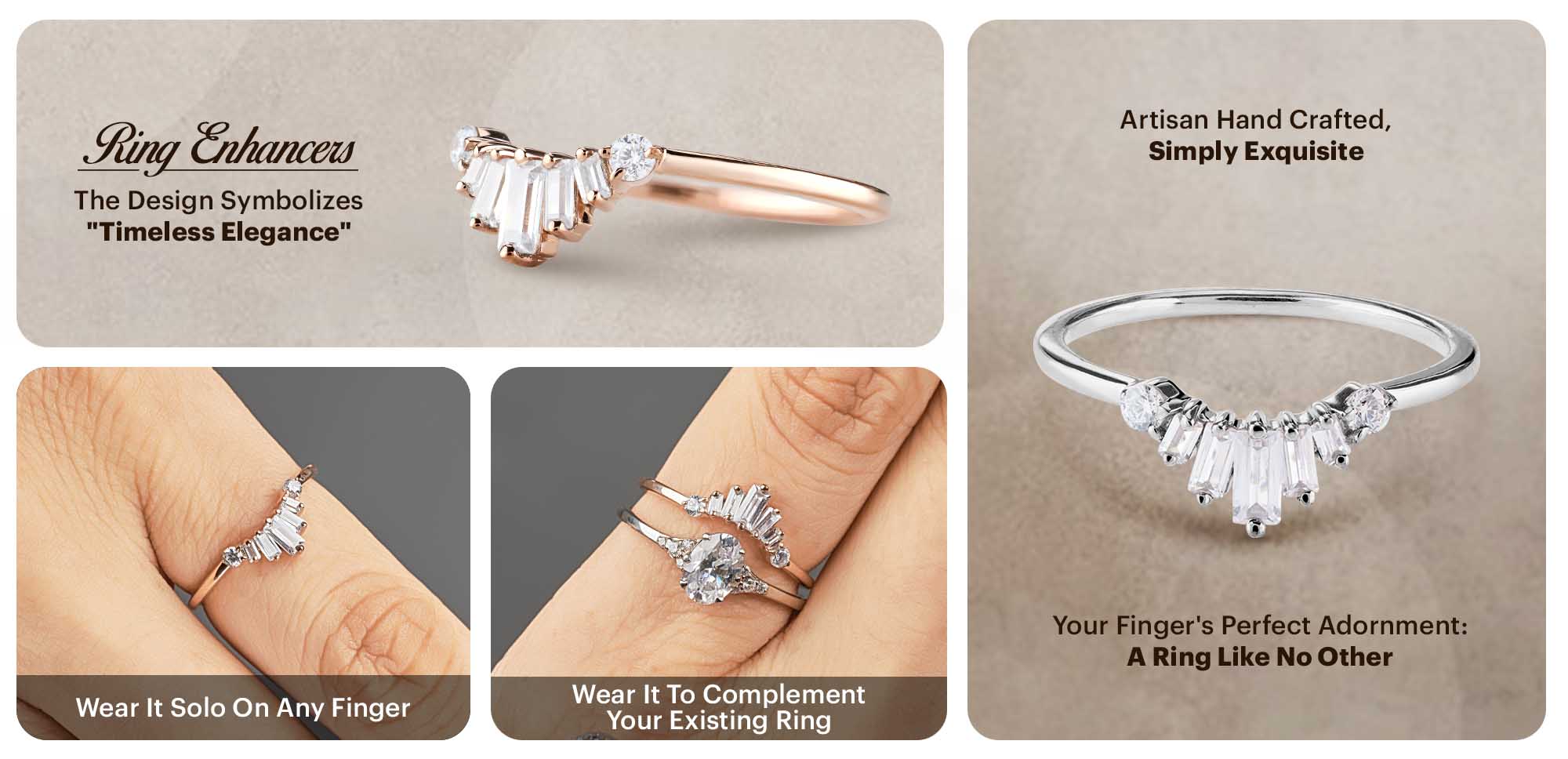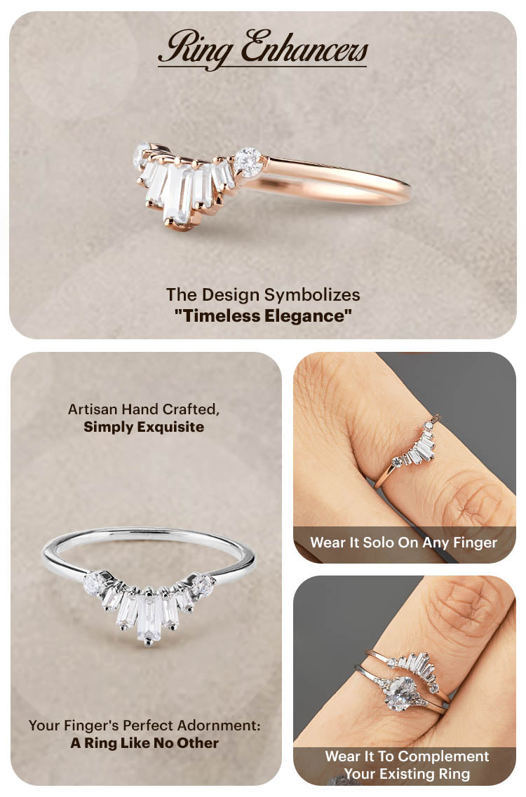 Learn moreBaguette Moissanite Tiara Ring Curved Wedding Band Enhancer