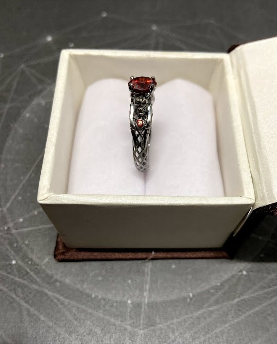 Dark Vampire Skull Ring Red Garnet Skull Engagement Ring Womens