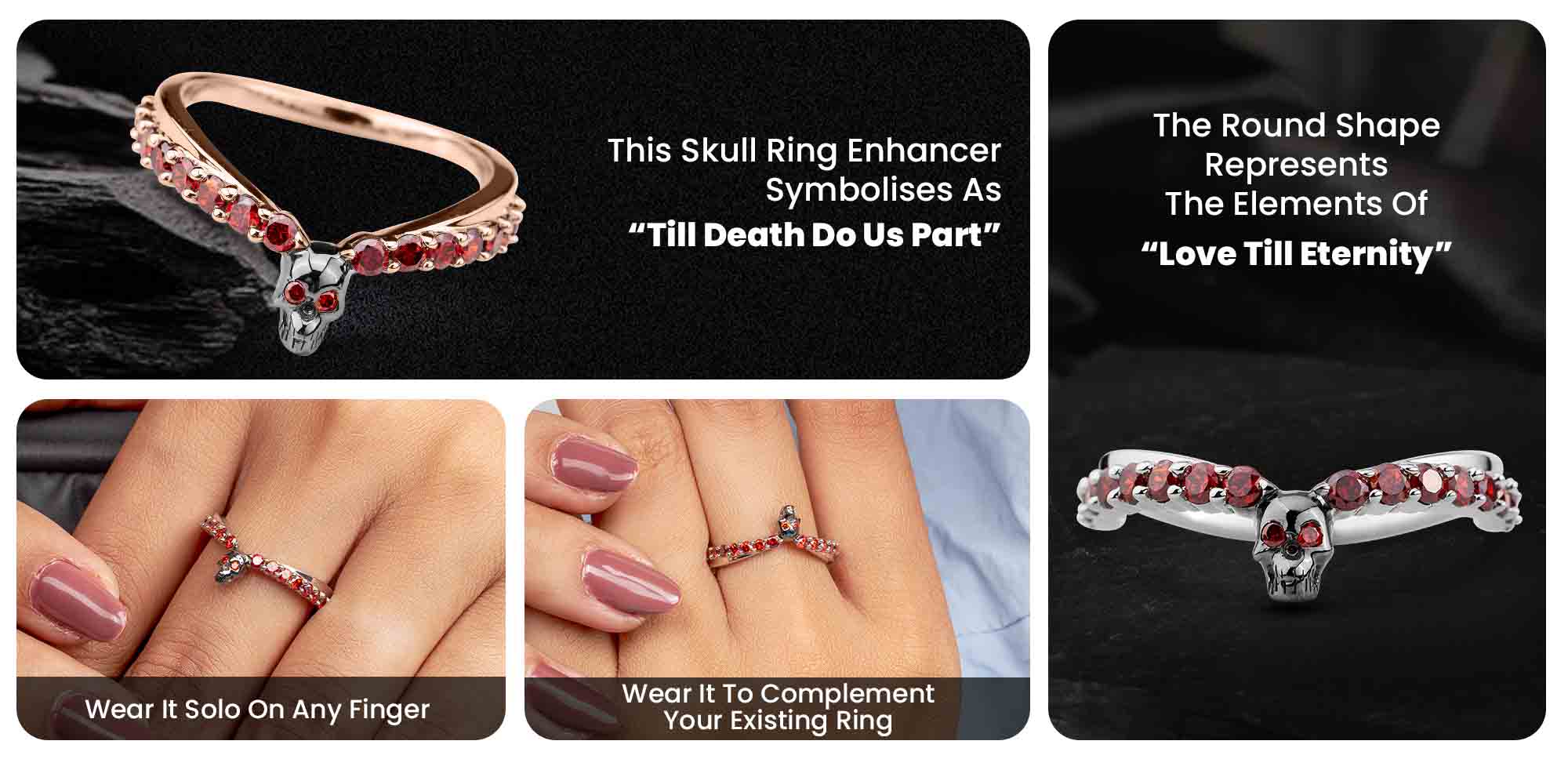 Learn moreGarnet Skull Ring Enhancer Gothic Curved Wedding Band Silver