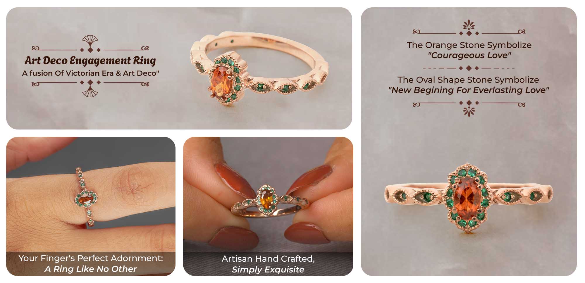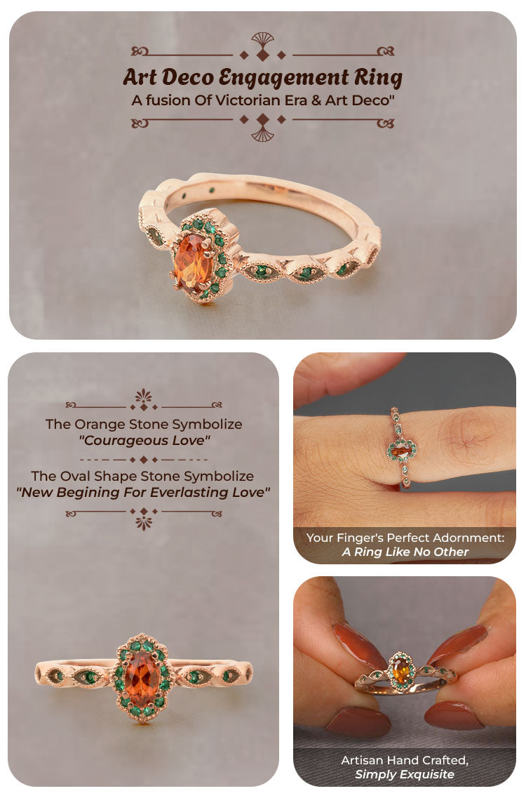 Learn moreHessonite Art Deco Engagement Ring Set Vintage Wedding Rings