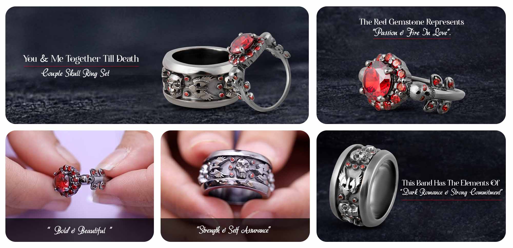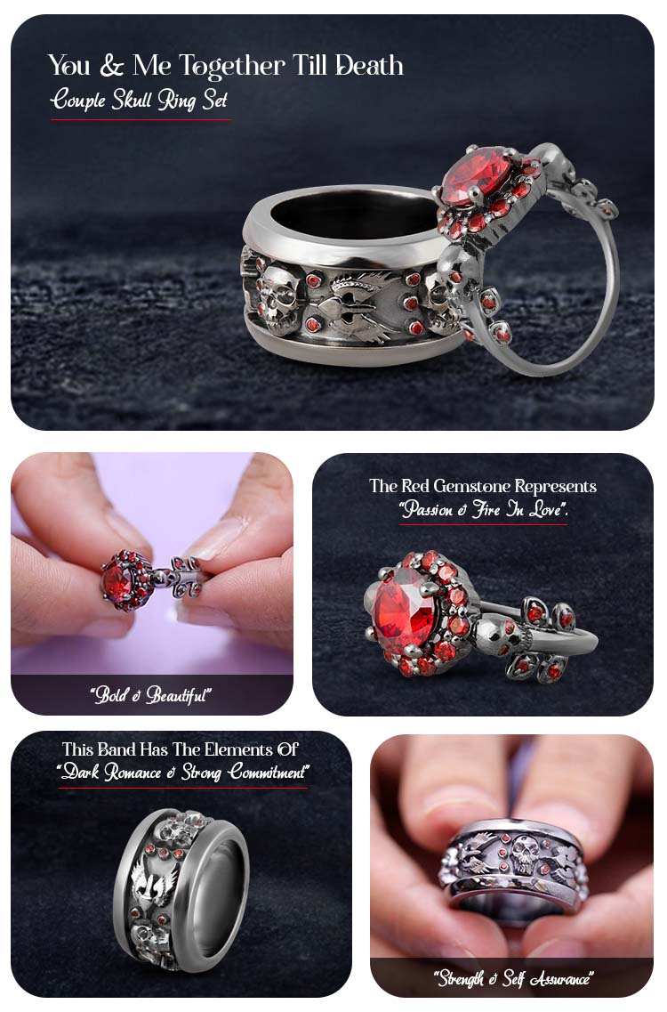 Learn moreMatching Skull Engagement Rings For Couple Gothic Jewelry Halo