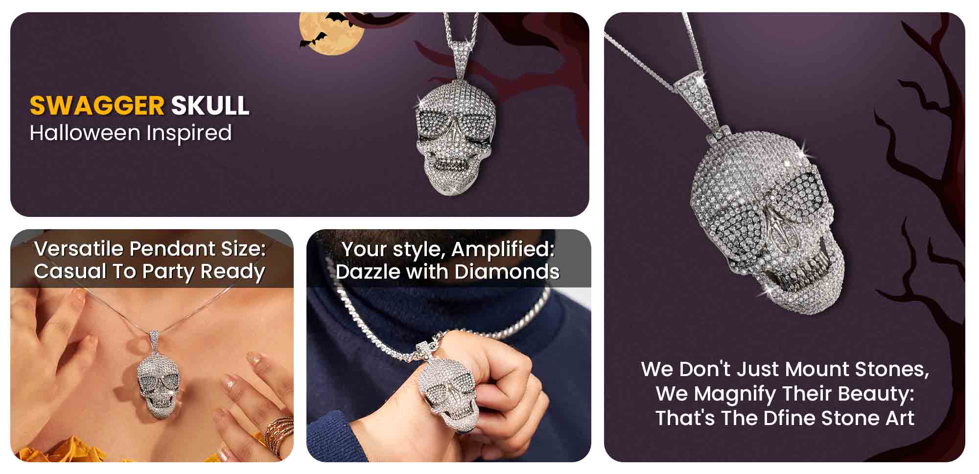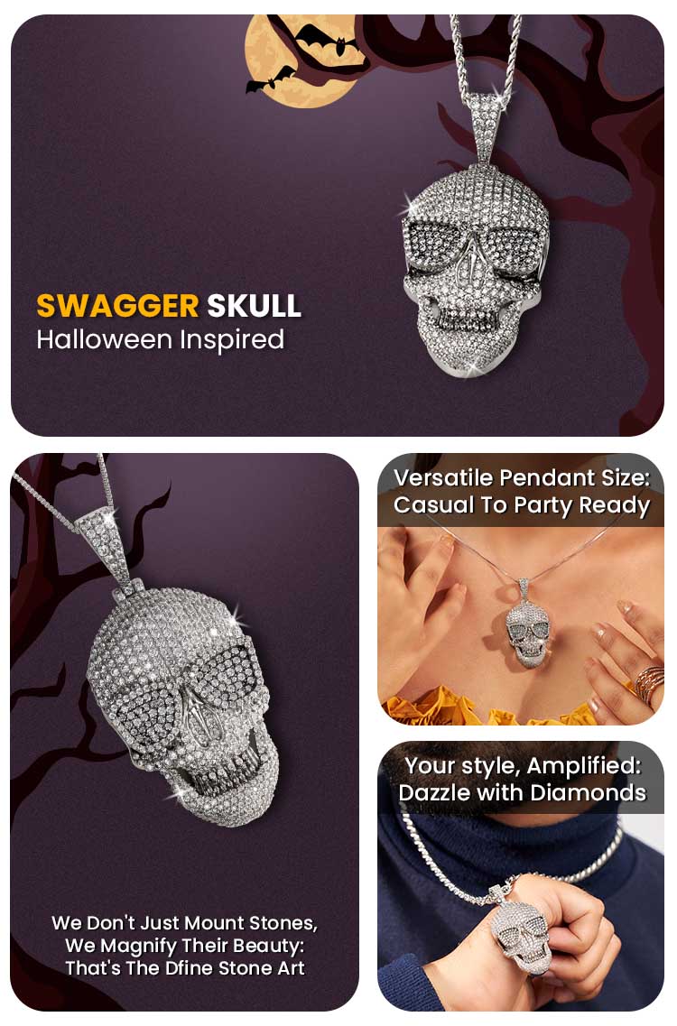 Learn moreMoissanite Iced Out Skull Pendant Necklace Hip Hop Halloween Jewelry Sterling Silver
