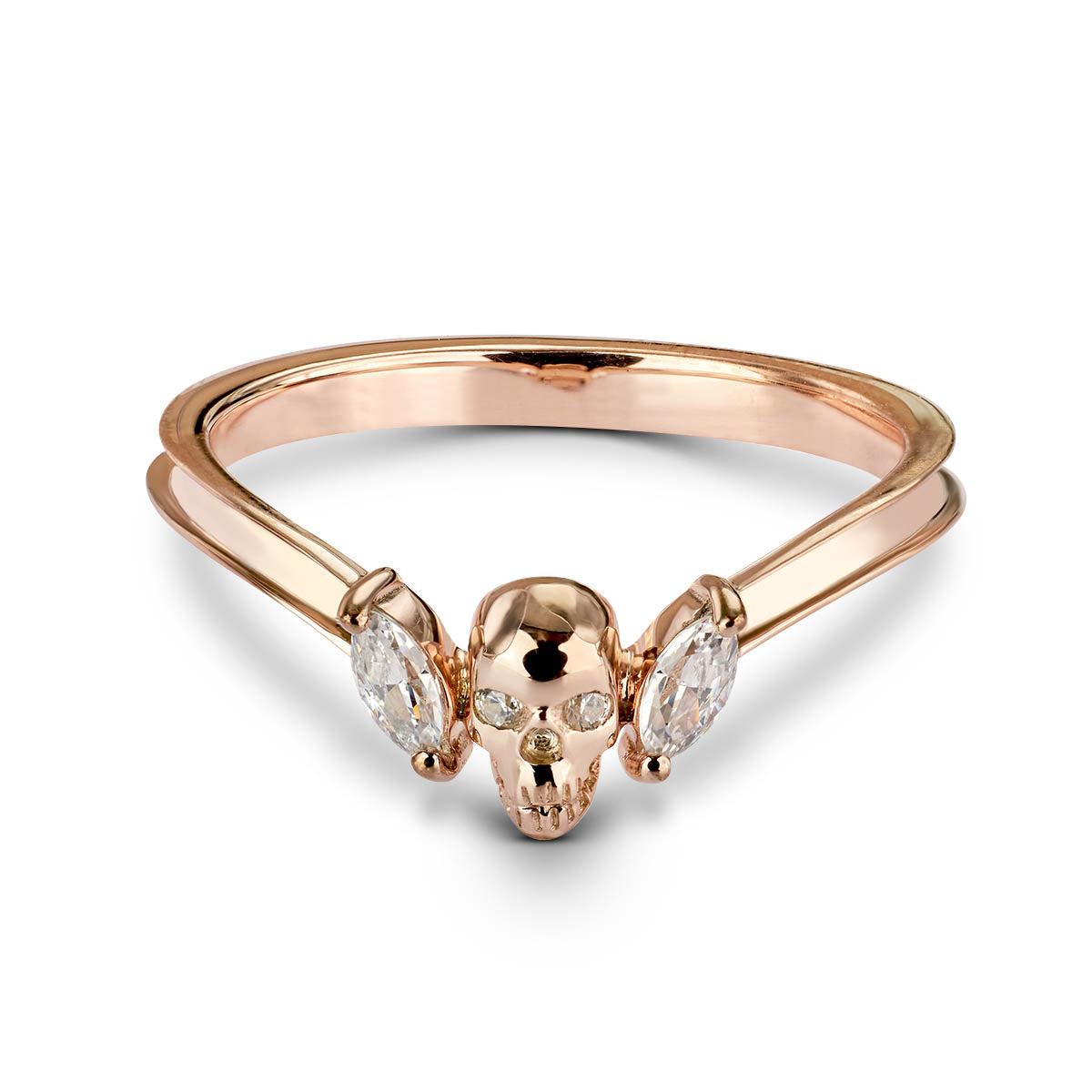 Moissanite Skull Ring Enhancer Engagement Gothic Curved Wedding Band Women's