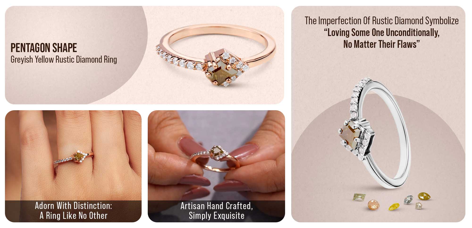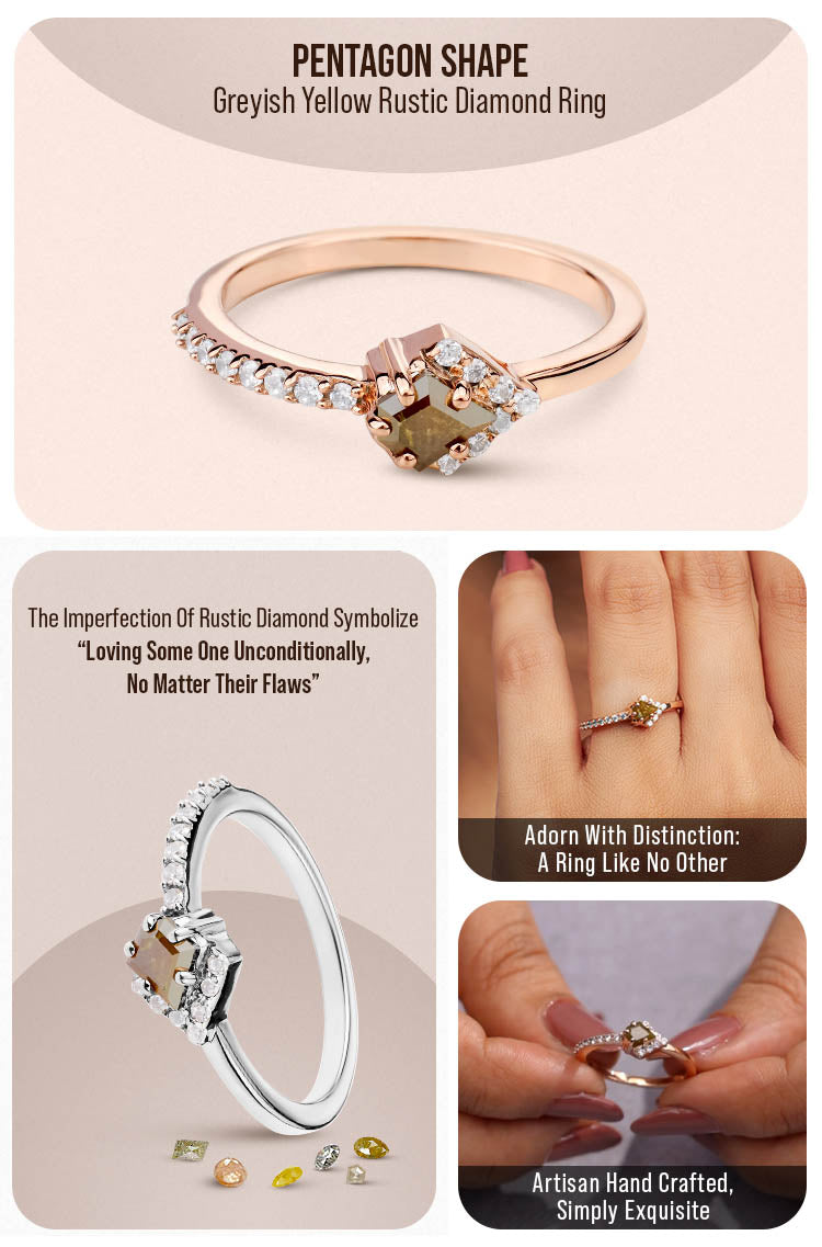 Learn morePentagon Cut Fancy Rustic Diamond Engagement Ring Rose Gold
