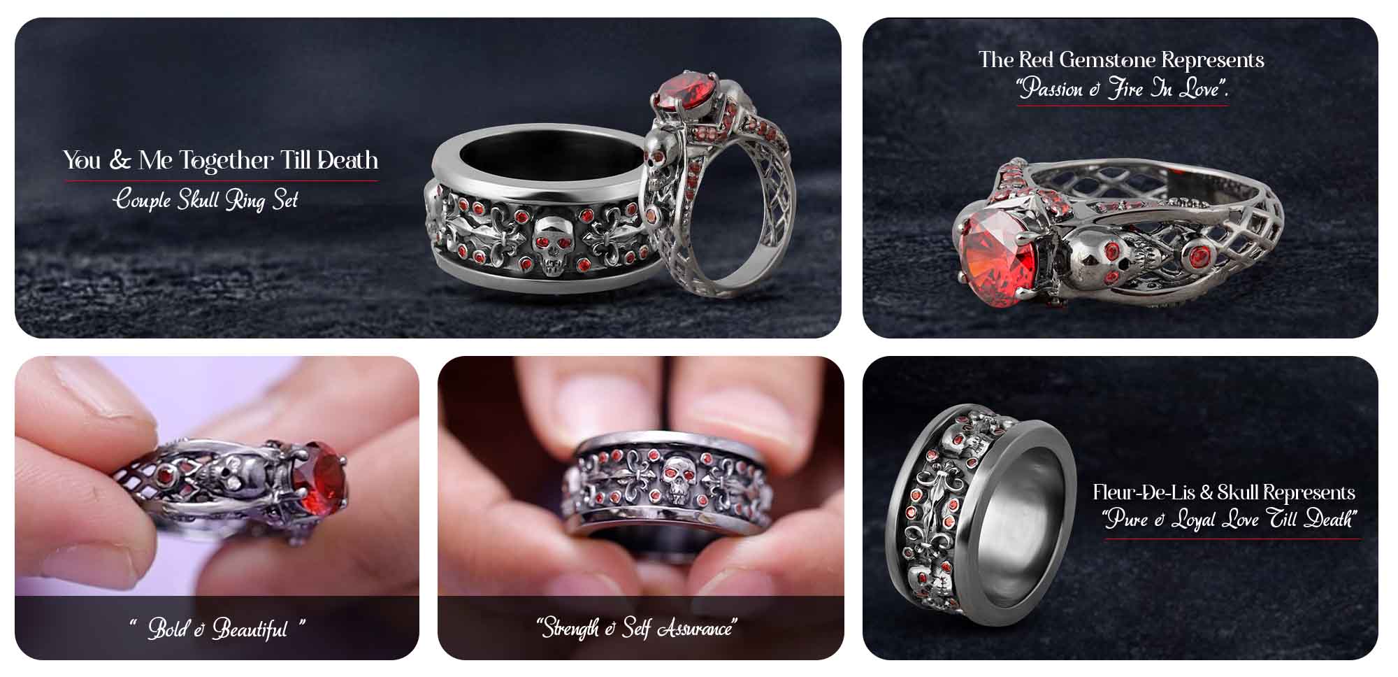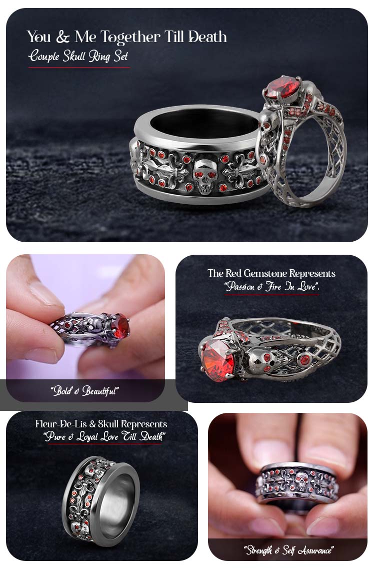 Learn moreVampire Skull Promise Rings Set Fleur De Lis Skull Matching Couple Set
