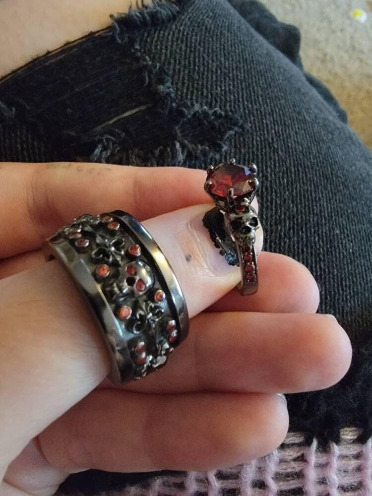 Vampire Skull Wedding Rings Set His and Her Gothic Couple Ring