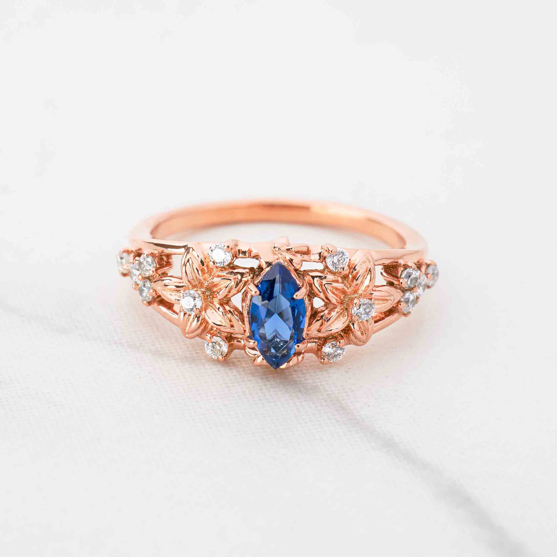 Art Nouveau Sapphire Ring Rose Gold Flower Engagement Ring