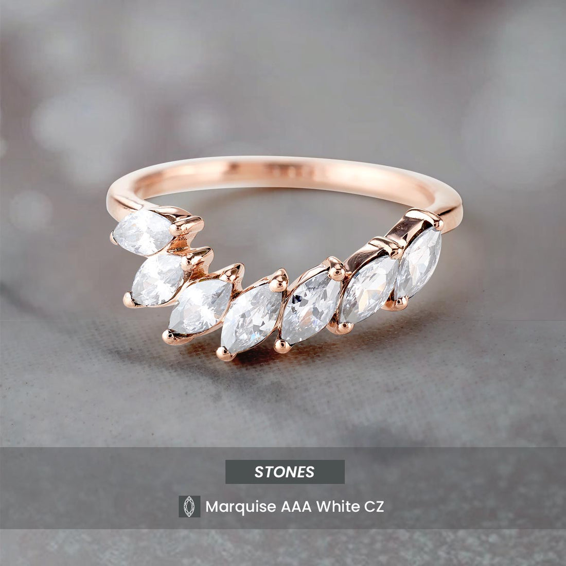 Ring Enhancer for Engagement Ring, Enhancer Wedding Band, Curved Wedding Band for Women, Marquise Cut...
