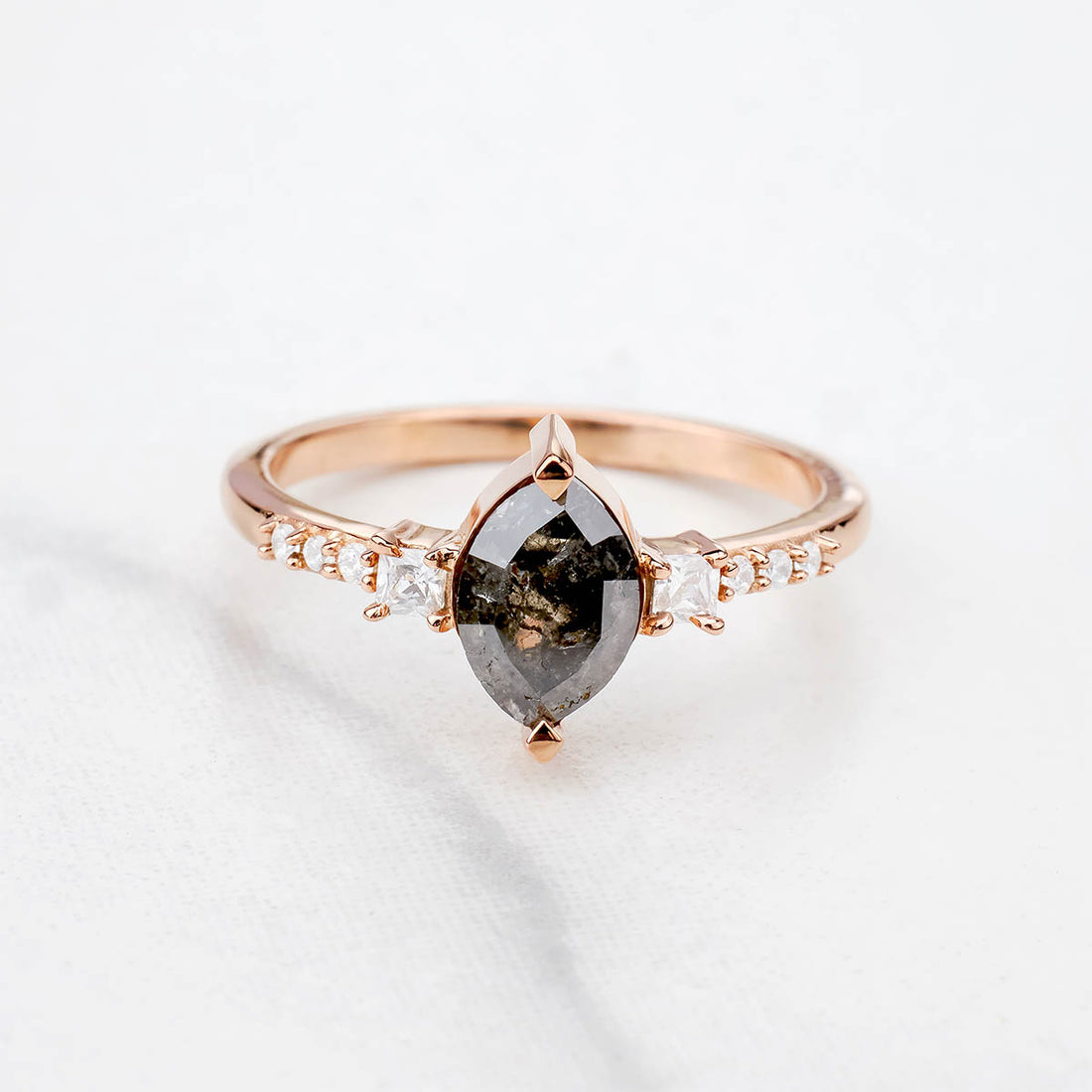 SPECIFICATION Salt and Pepper Engagement Ring for Women, Approx 1.15TCW Marquise Cut Black Natural Rustic...