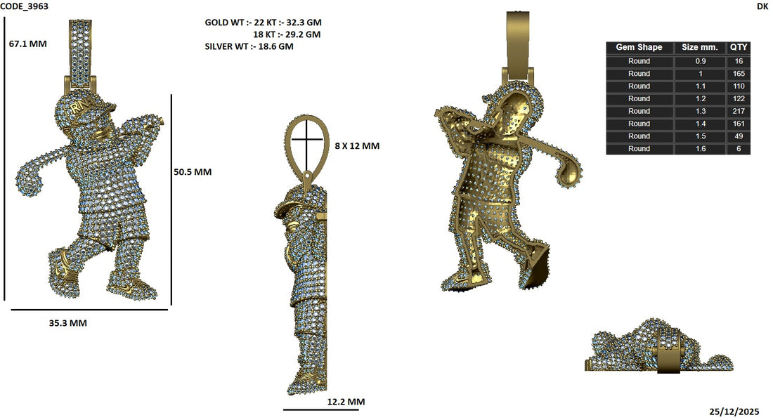 Golfer Pendant Necklace - Moissanite Iced Out Sterling Silver - Part 1