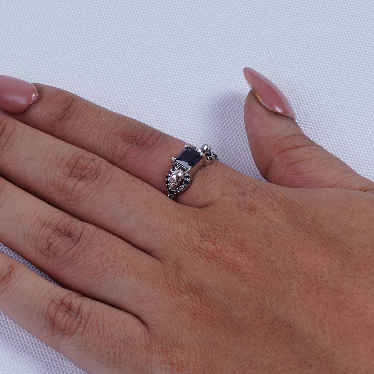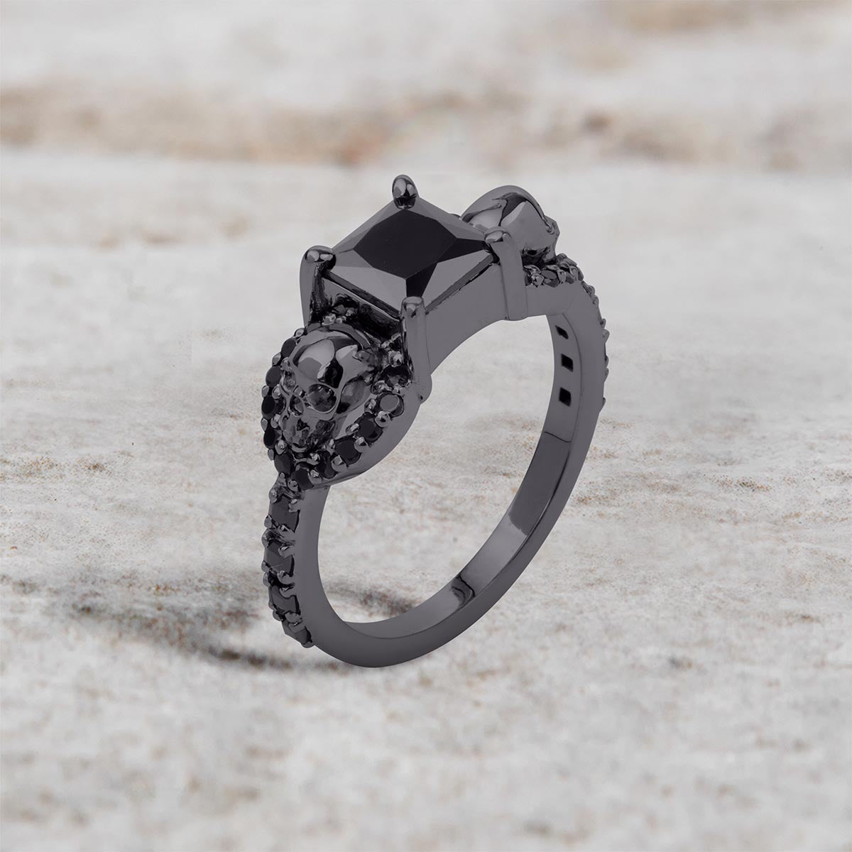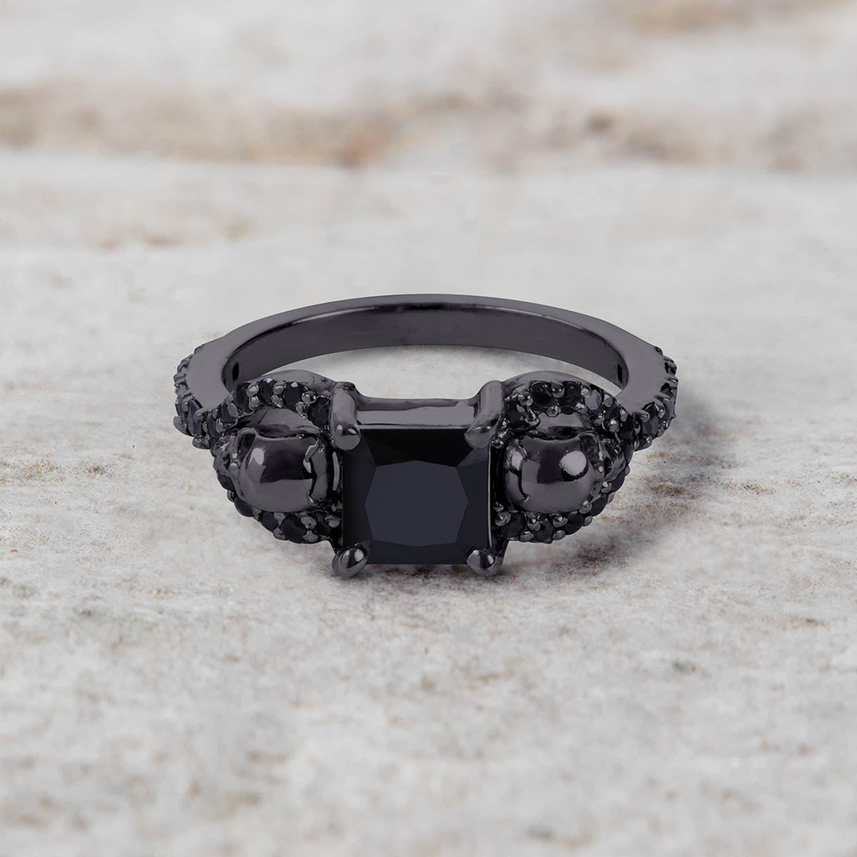 Black Spinel Skull Couple Rings Gothic Wedding Ring Set His Her