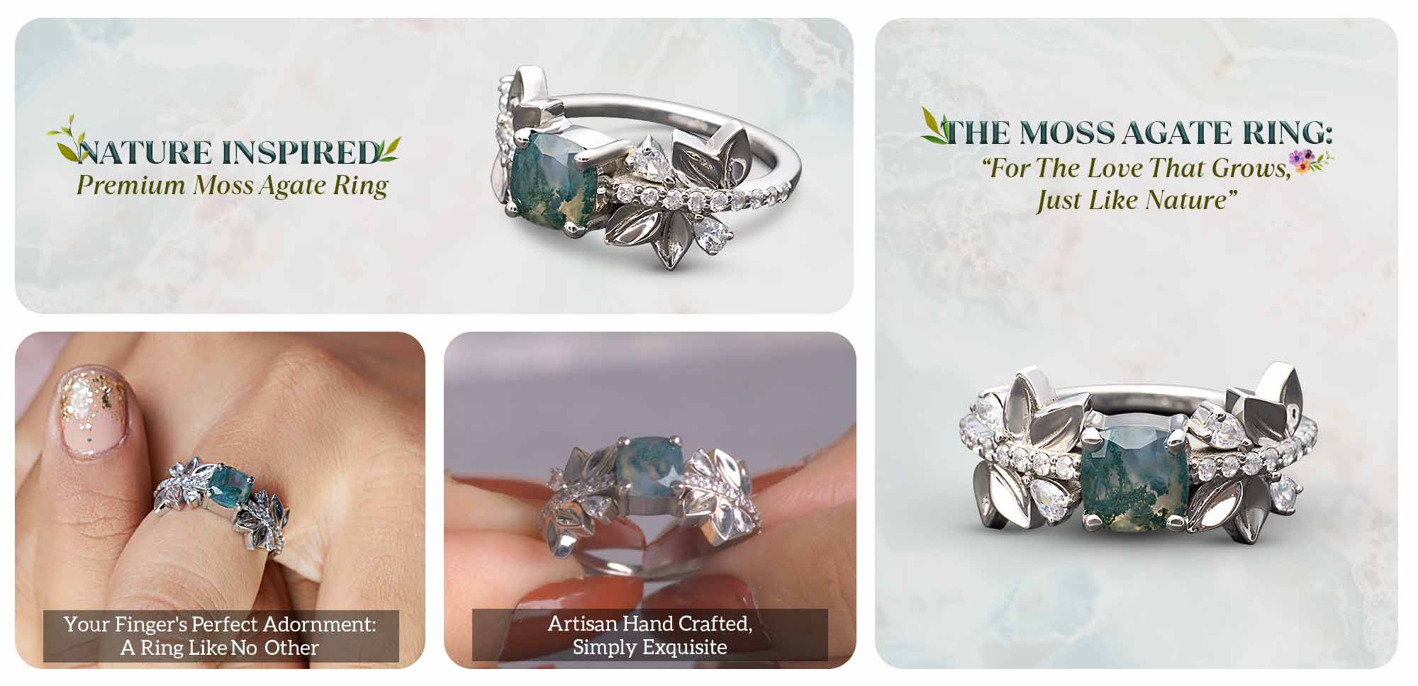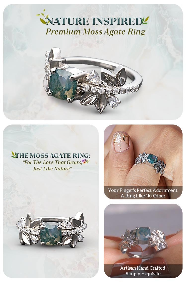 Learn moreCushion Cut Moss Agate Engagement Ring Nature Floral Leaf Silver
