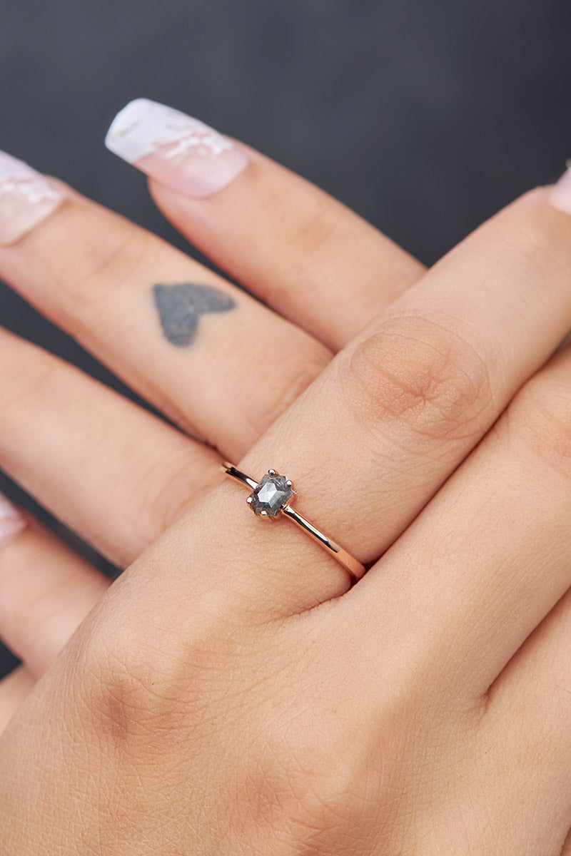 Hexagon Diamond Engagement Ring Set Salt and Pepper Rings