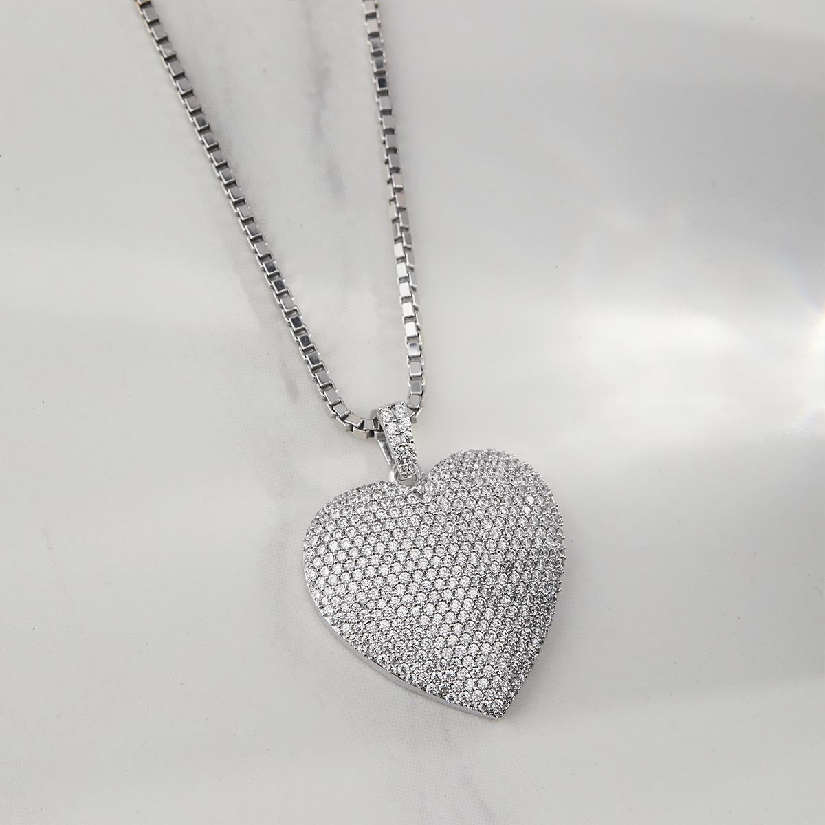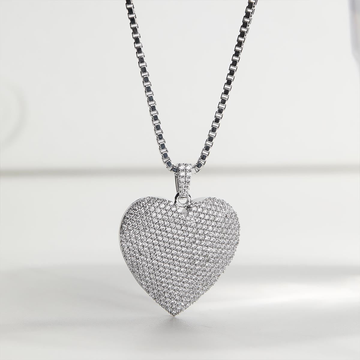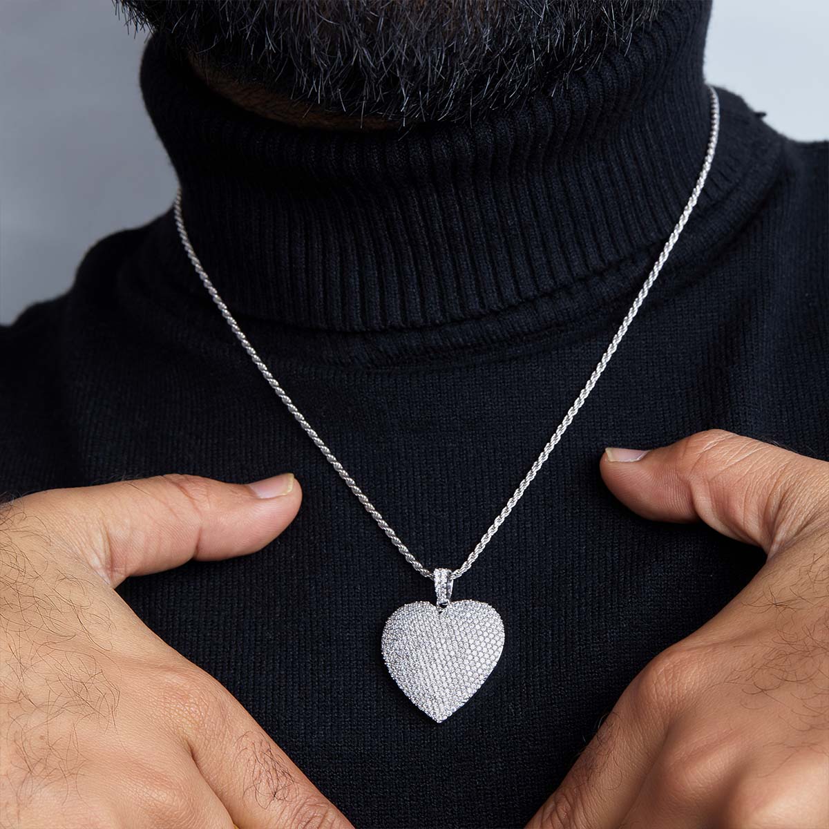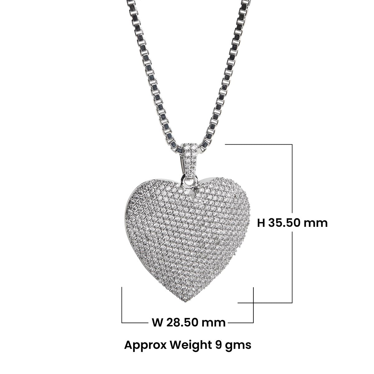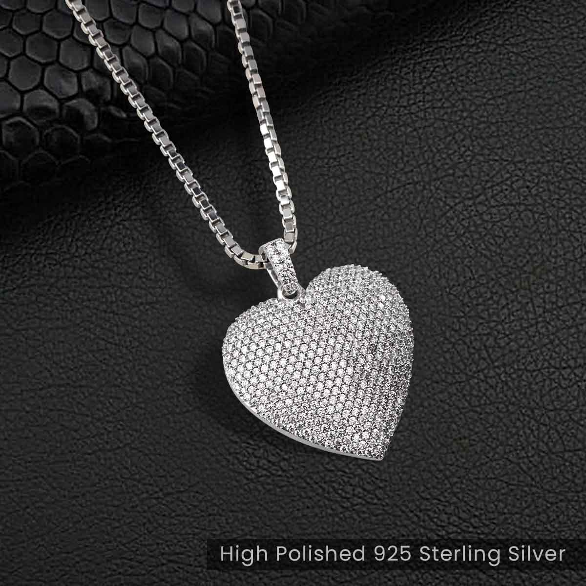 Iced Out Heart Pendant Necklace AAA CZ Diamond Sterling Silver