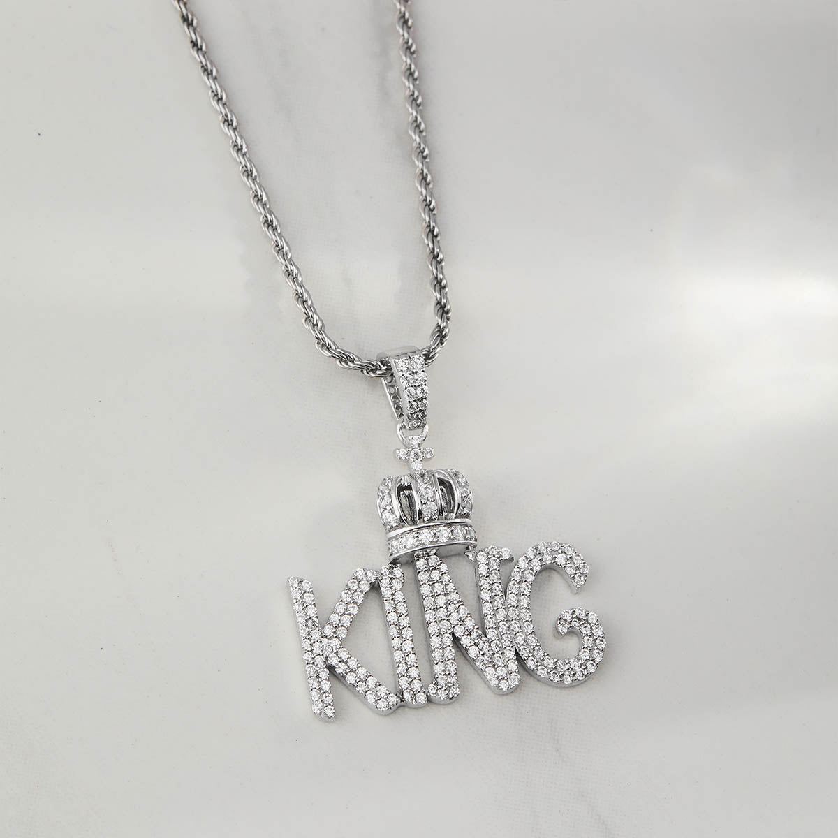Iced Out KING Pendant Necklace with Crown 925 Sterling Silver