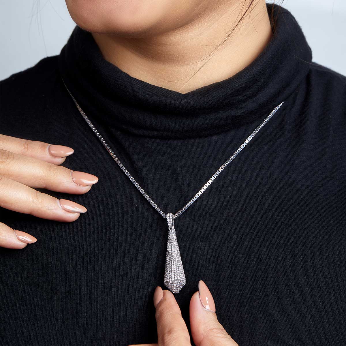 Learn moreIced Out Pointed Pendant Necklace Cubic Zirconia Sterling Silver
