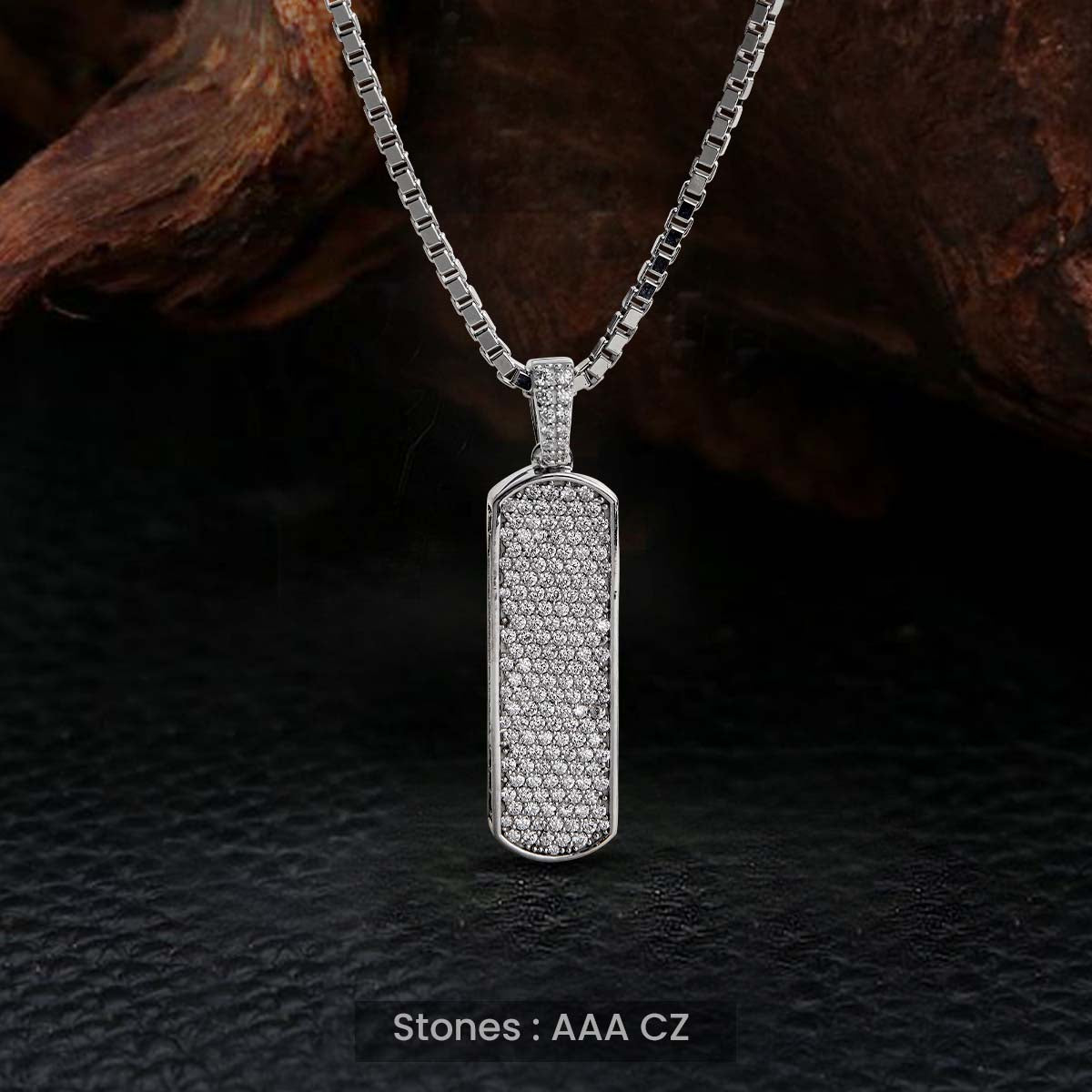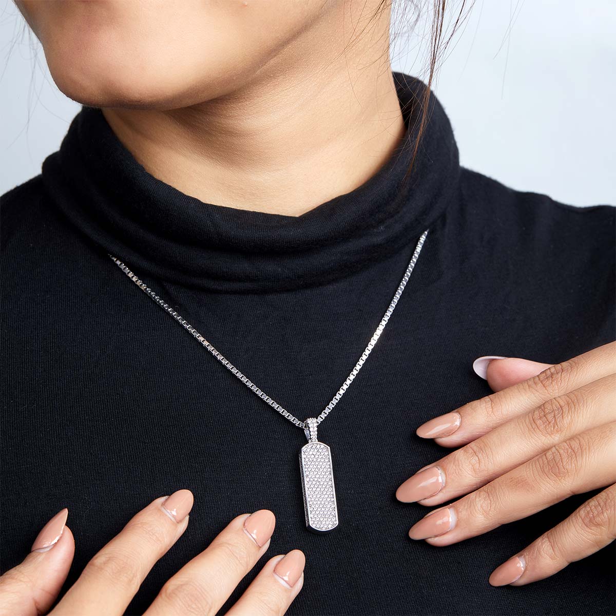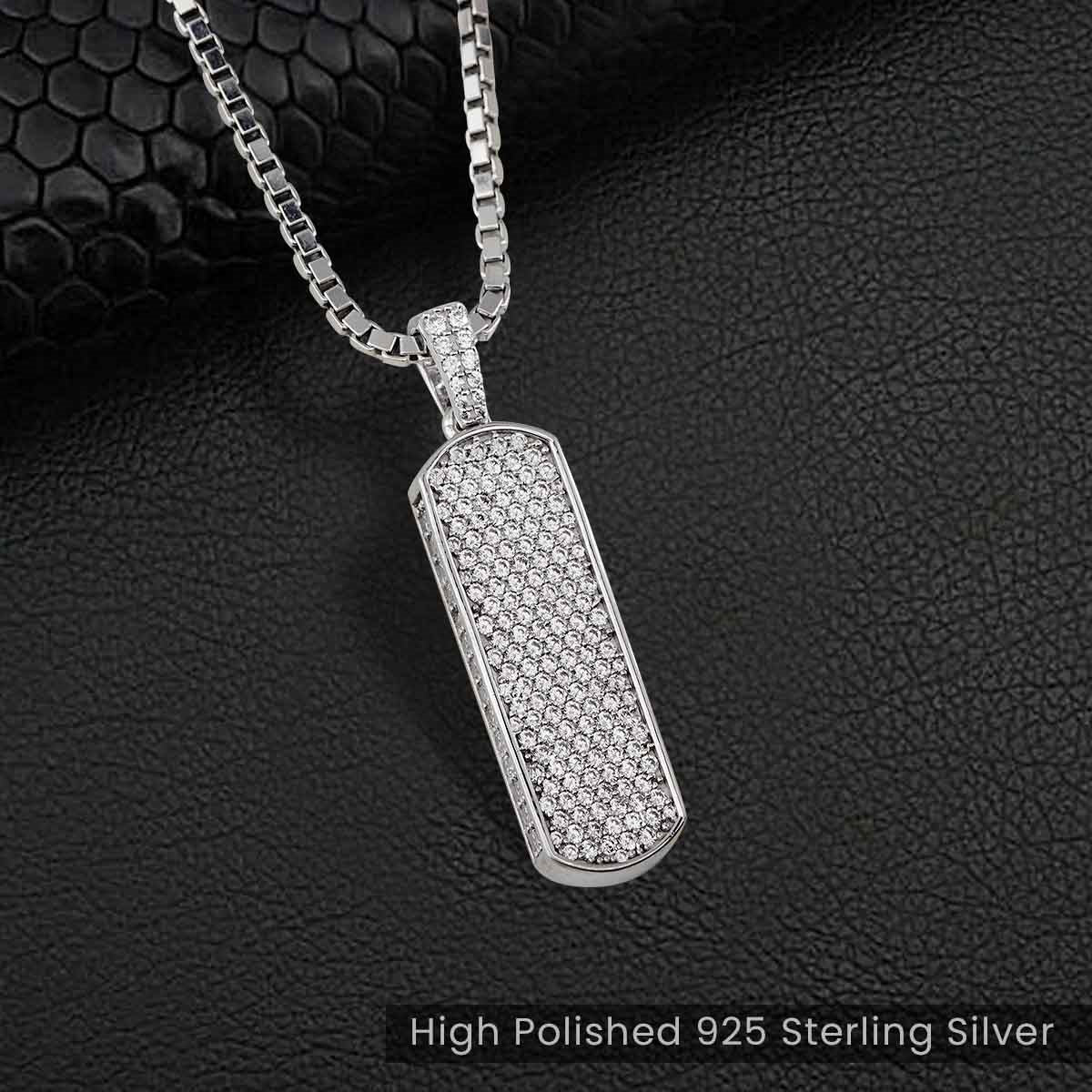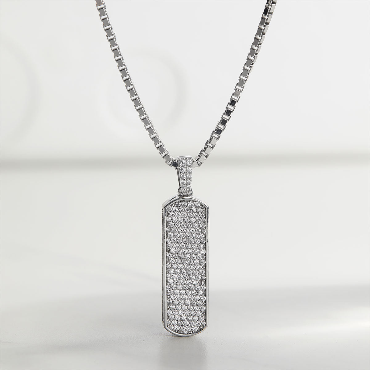 Iced Out Vertical Bar Necklace Hip Hop Pendant Unisex Jewelry