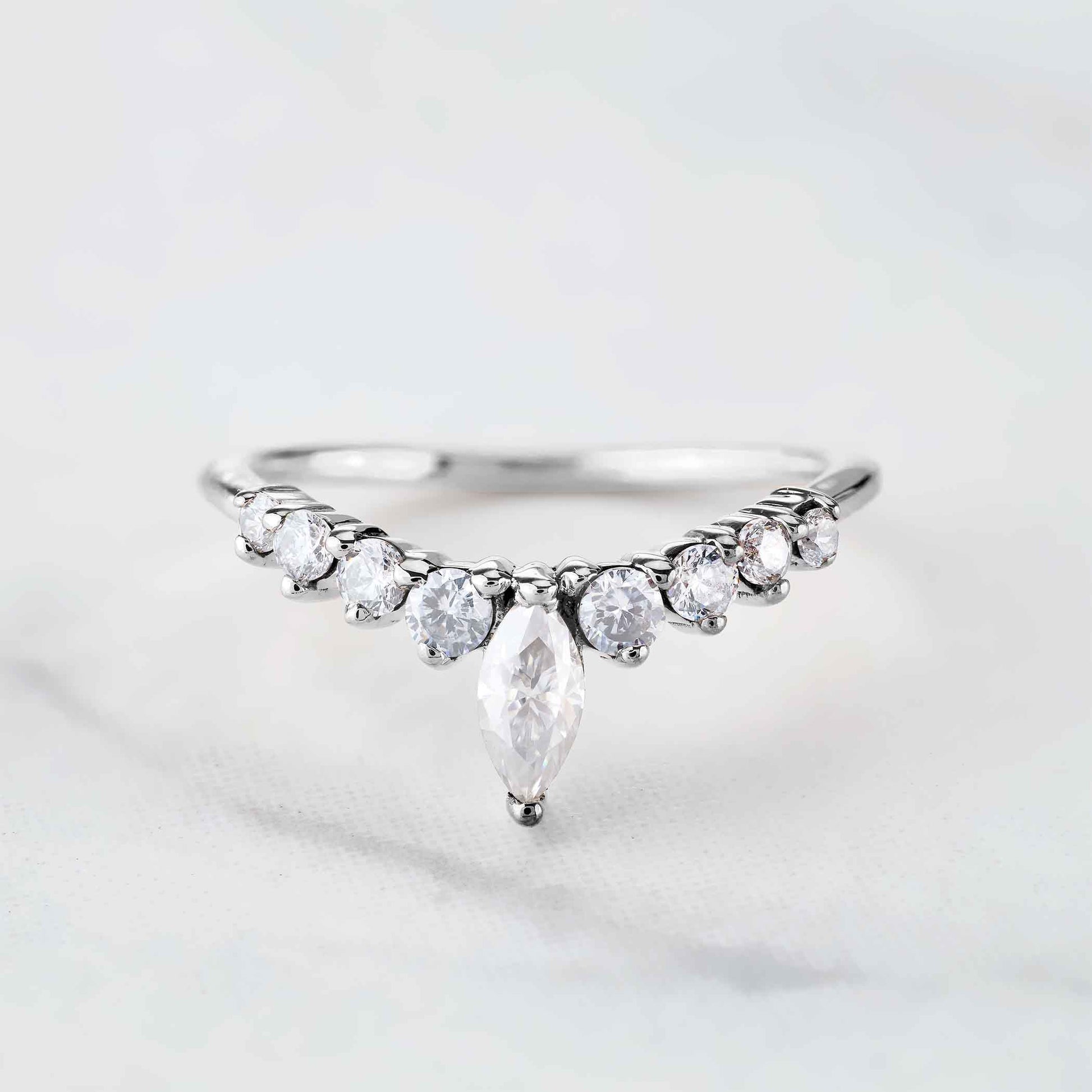 Marquise Curved Wedding Band Women Vintage Engagement Enhancer Ring Silver